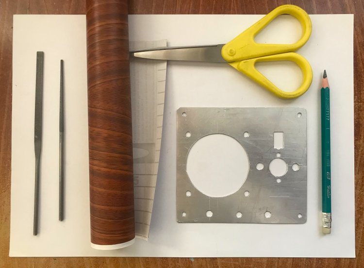 Заготовки для передней панели. Слева – листовая дюраль толщиной 1 … 2 мм. Справа - пластиковый корпус с габаритными размерами 119,5 х 96,5 х 45 мм. и толщиной стенок равной 3 мм.
