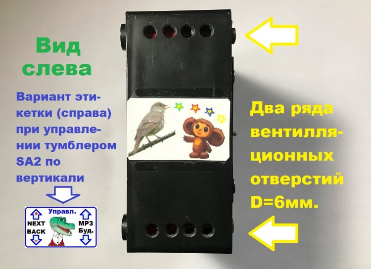 - трёхпозиционного тумблера SA2 типа MTS-103, предназначенного для управления музыкальными треками и их громкостью;