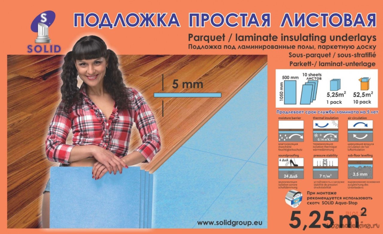 Простая, листовая подложка под ламинат, голубого цвета, толщиной 5 мм.