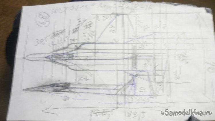 Долго размышлял. глядя на свой "чертёж" и решил немного удлинить носовую часть модели.