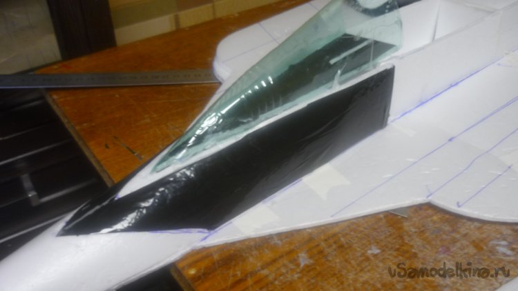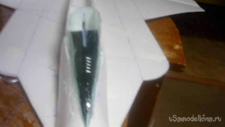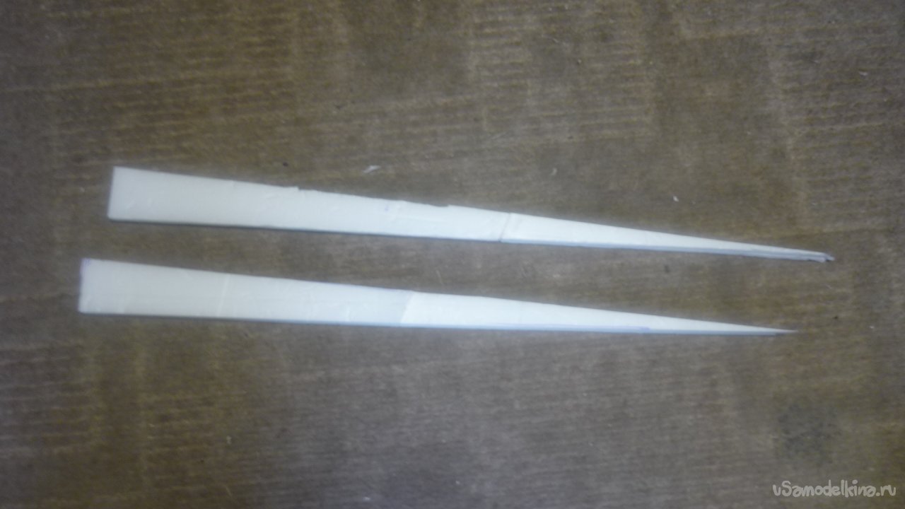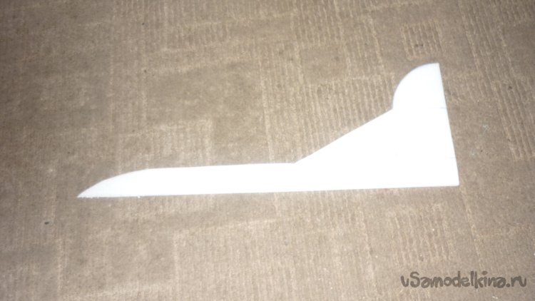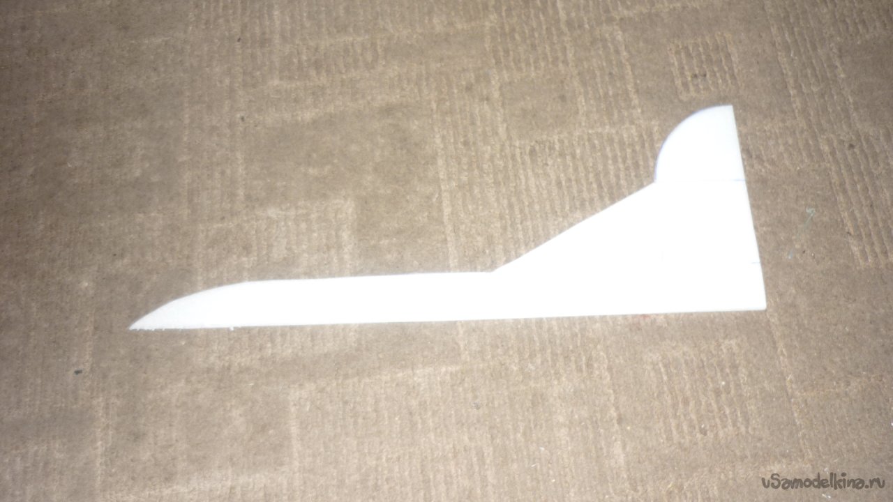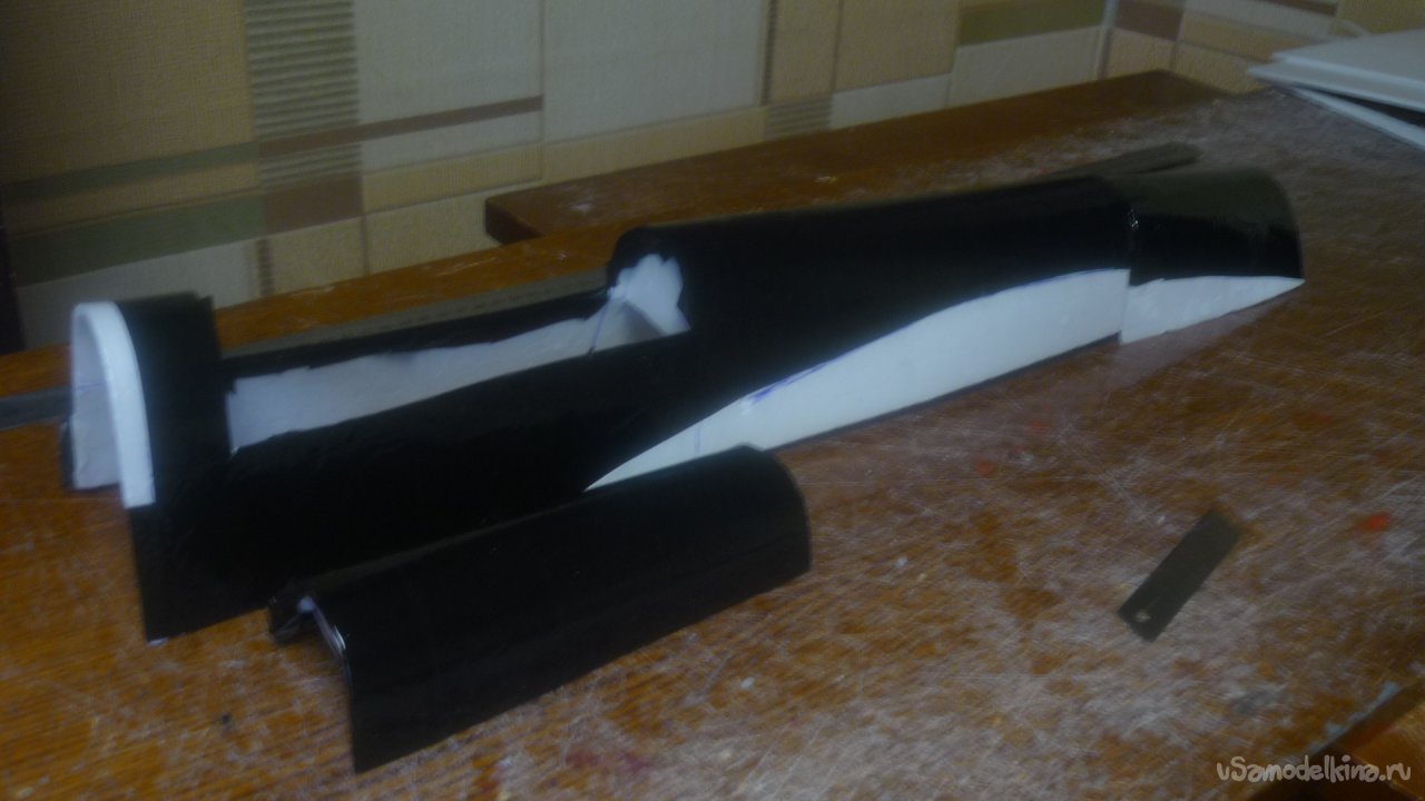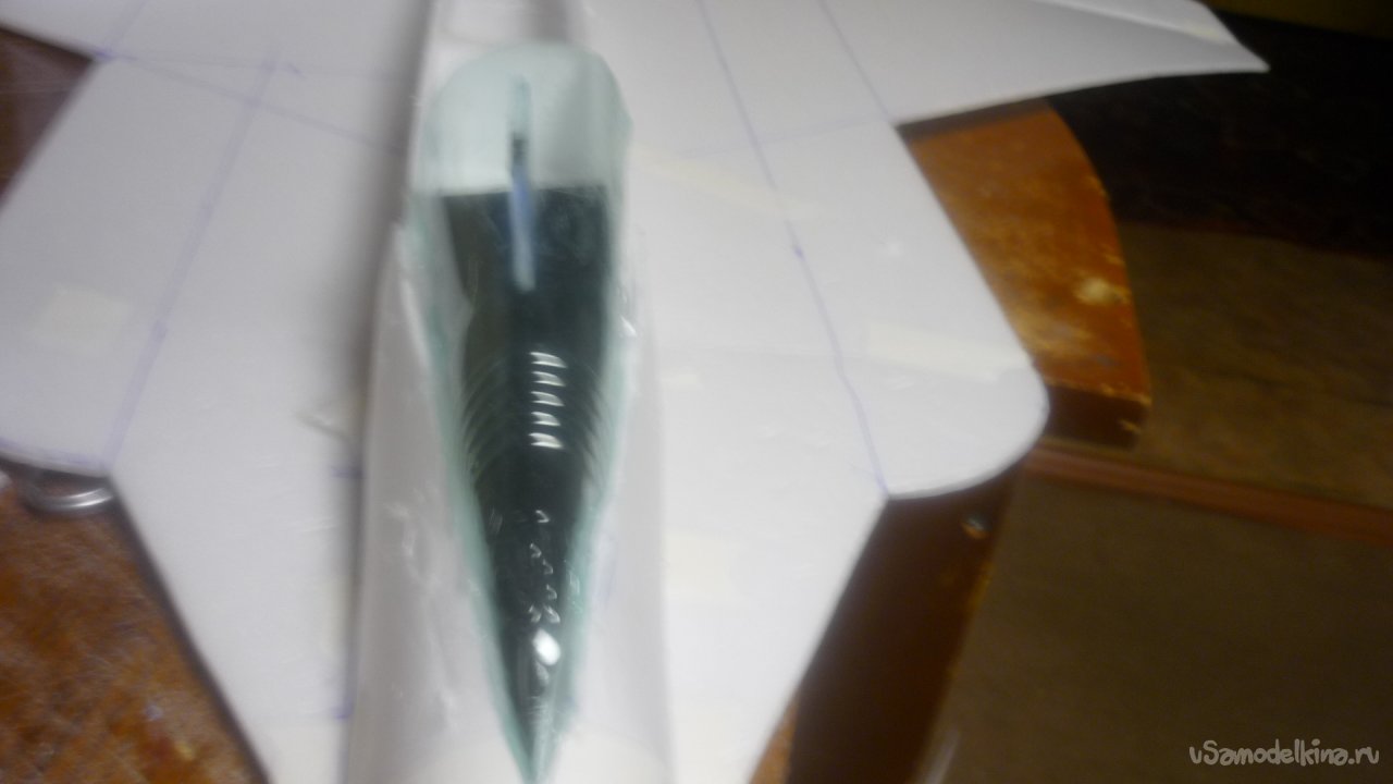 .Выкраиваю заготовки , недостающего внешнего покрытия хвостовой части модели, примеряю и вклеиваю.