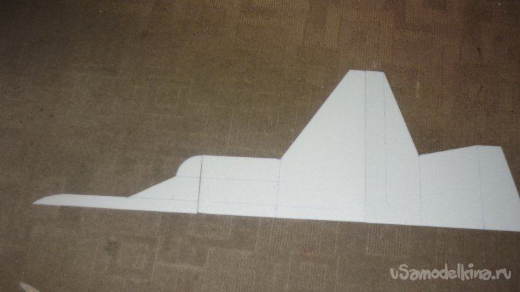 Разметил и вырезал хвостовую часть нижней обшивки модели.