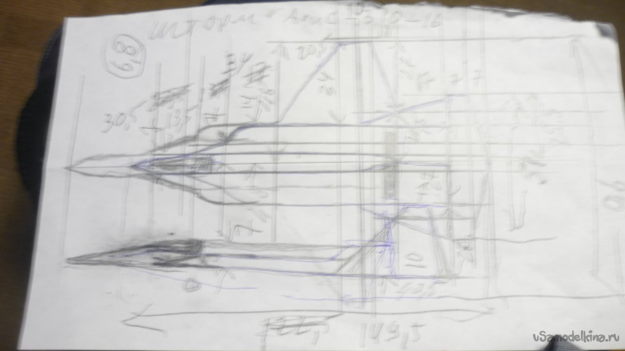 За основу, при создании этой авиамодели, я взял чертежи Сергея Александрова по его проекту AL- 310 Storm.