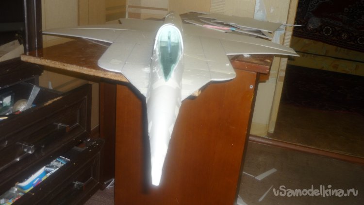Монтирую внешнюю обшивку фюзеляжа в средней части модели.