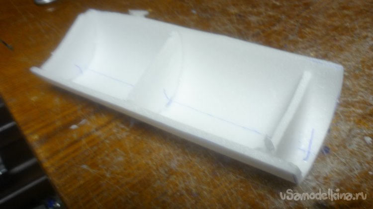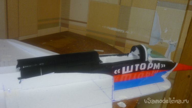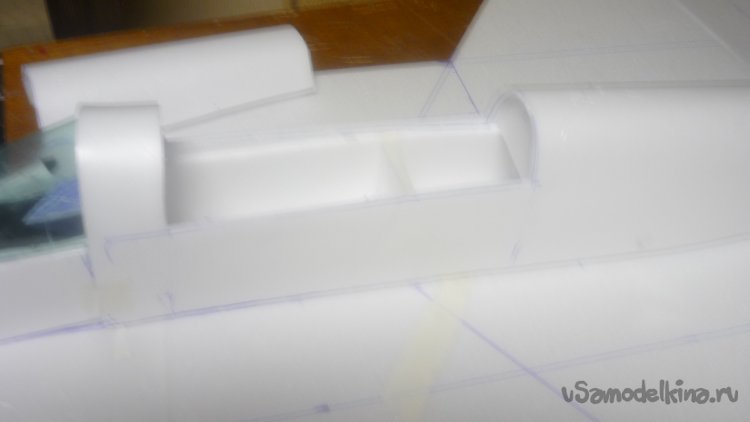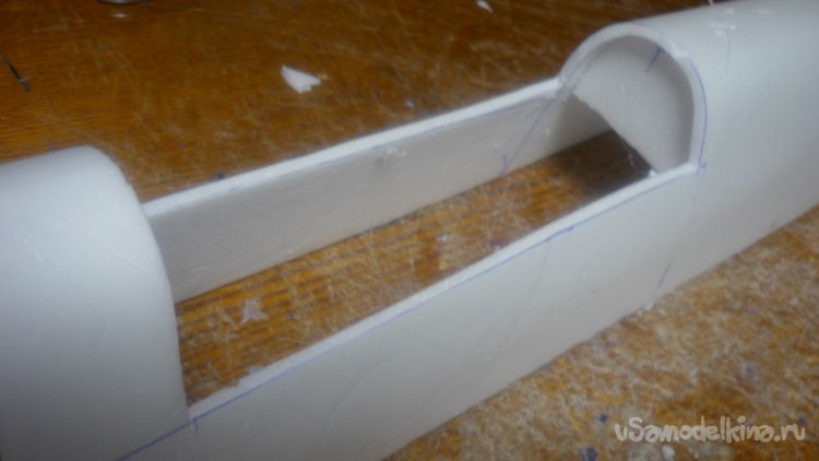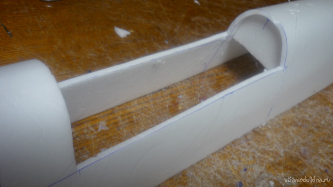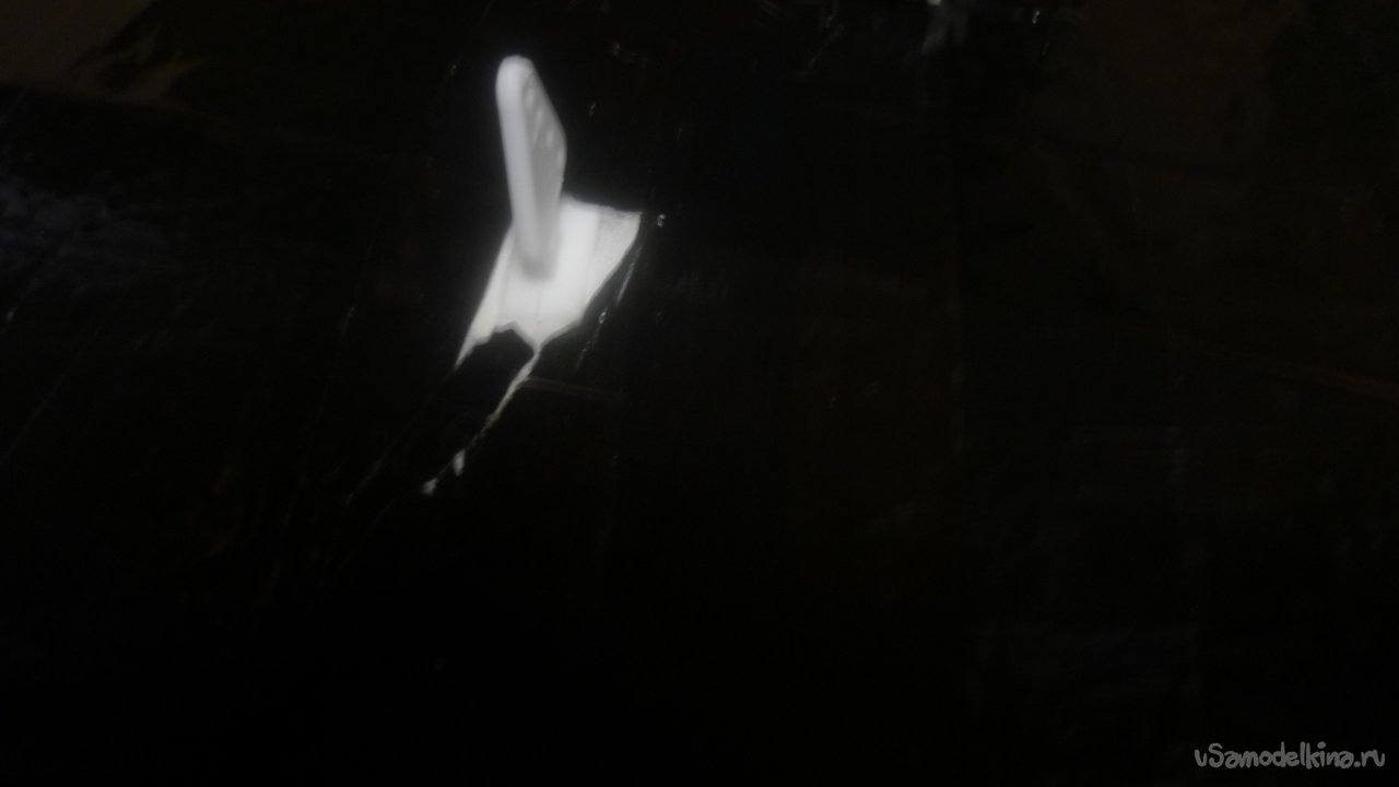 Прорезаю окно в хвостовой части модели, в котором будет вращаться винт ( пропеллер).