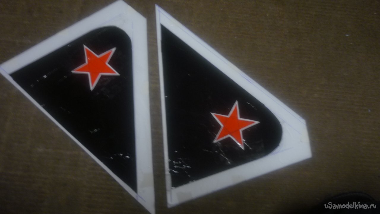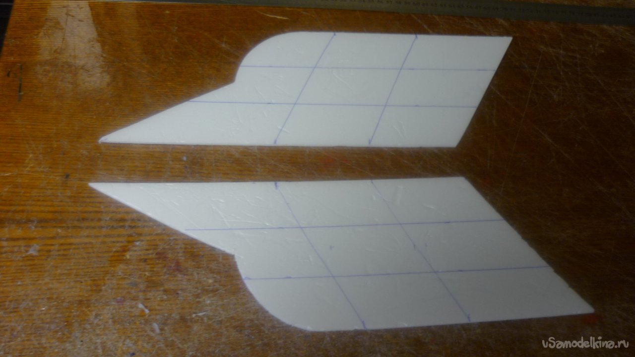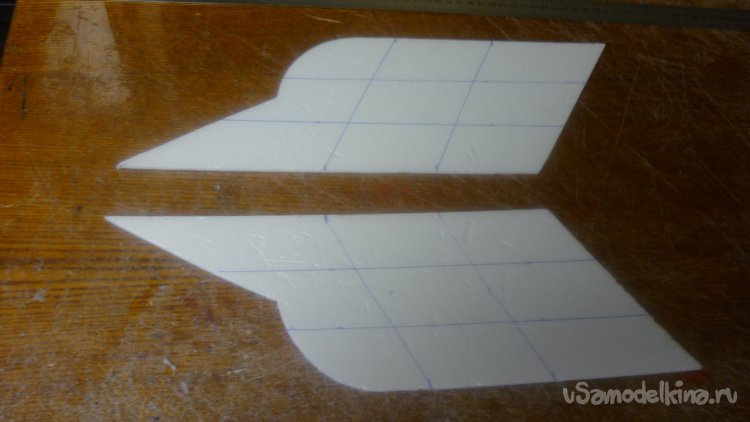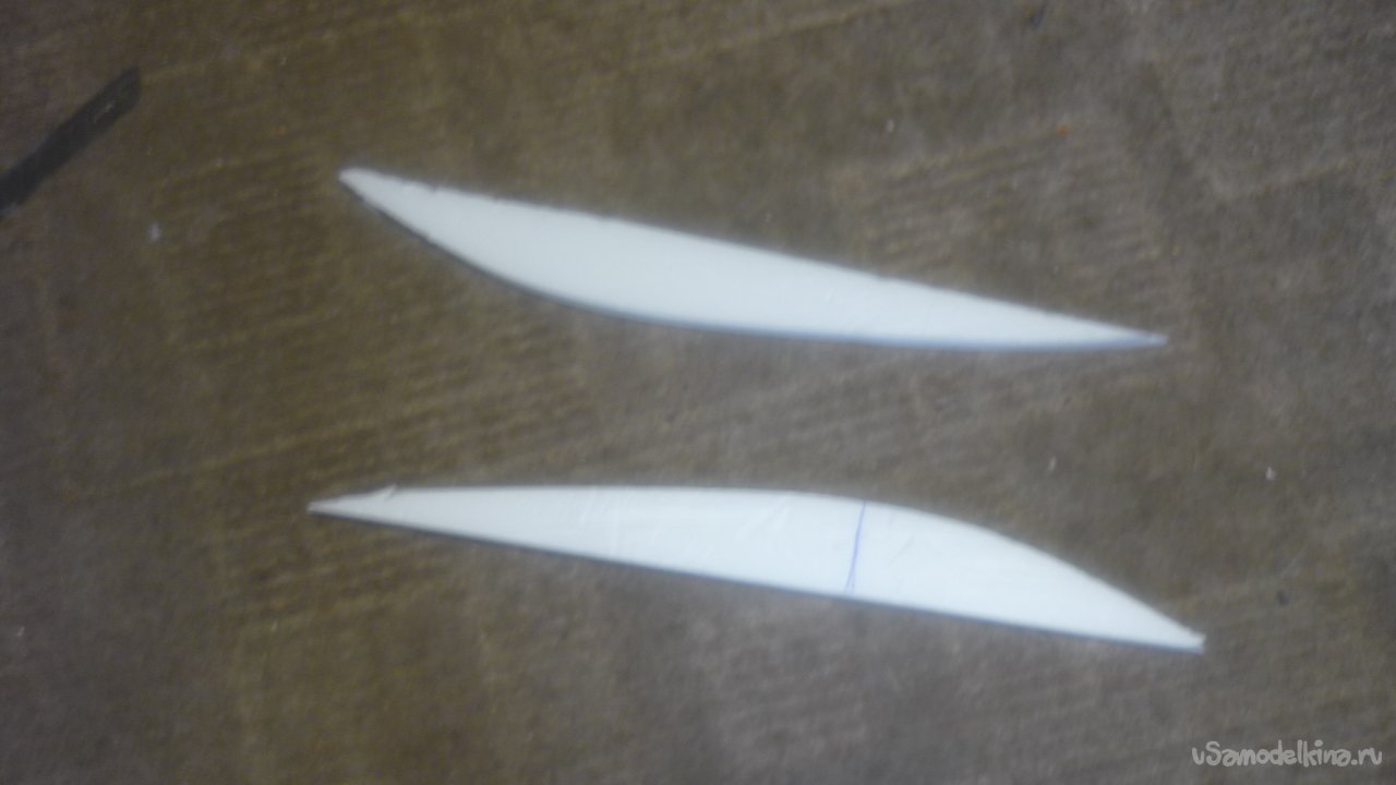 Вырезаю заготовки для килей. Кили склеиваются в два слоя. Подготавливаю места для установки килей. Примеряю. и монтир