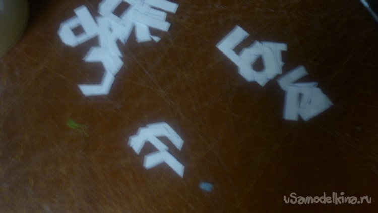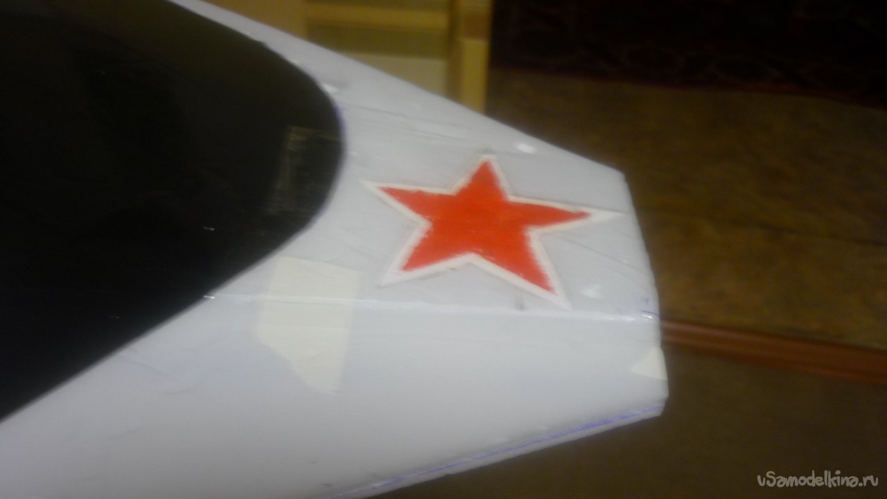 Обтягиваю модель цветным скотчем. Наношу красные звёзды.