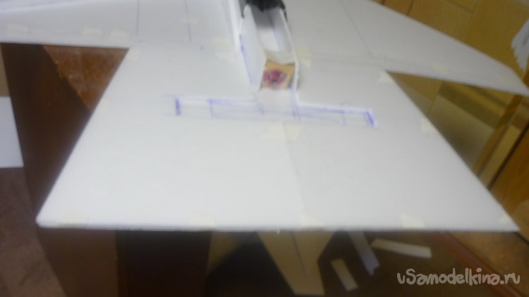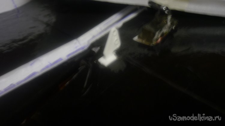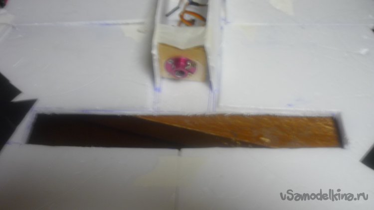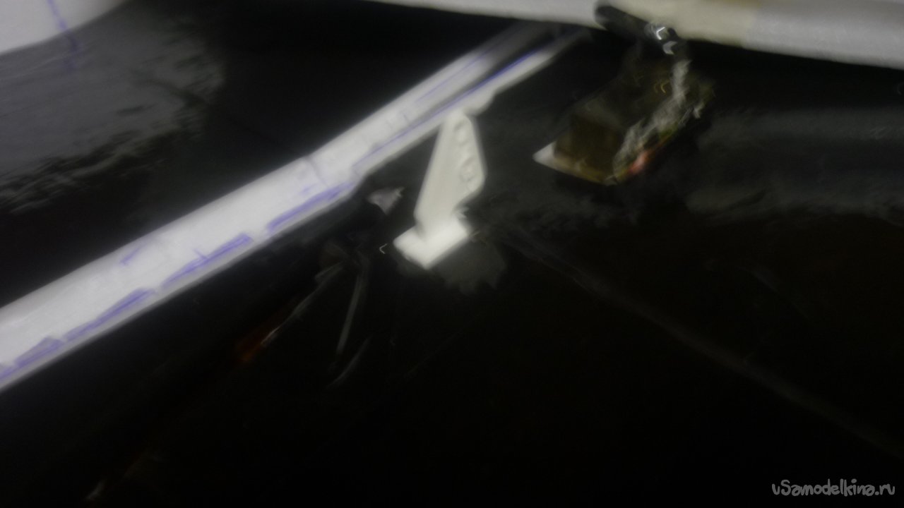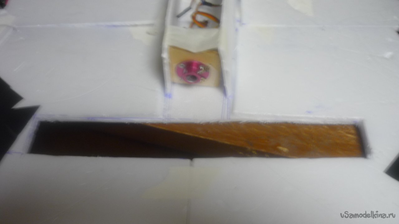 Размечаю места установки сервомашинок управления элеронамиМонтирую сервомашинки, прокладываю провода.