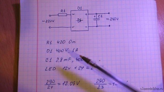 Следует отметить, что автор видео приносит отдельную схему, в которой выдаются участвующие элементы. Схема показана в фотографии ниже.