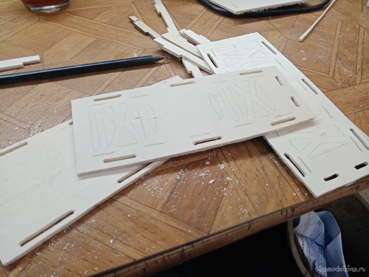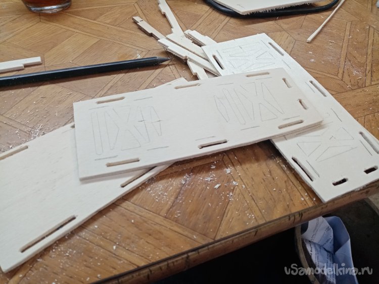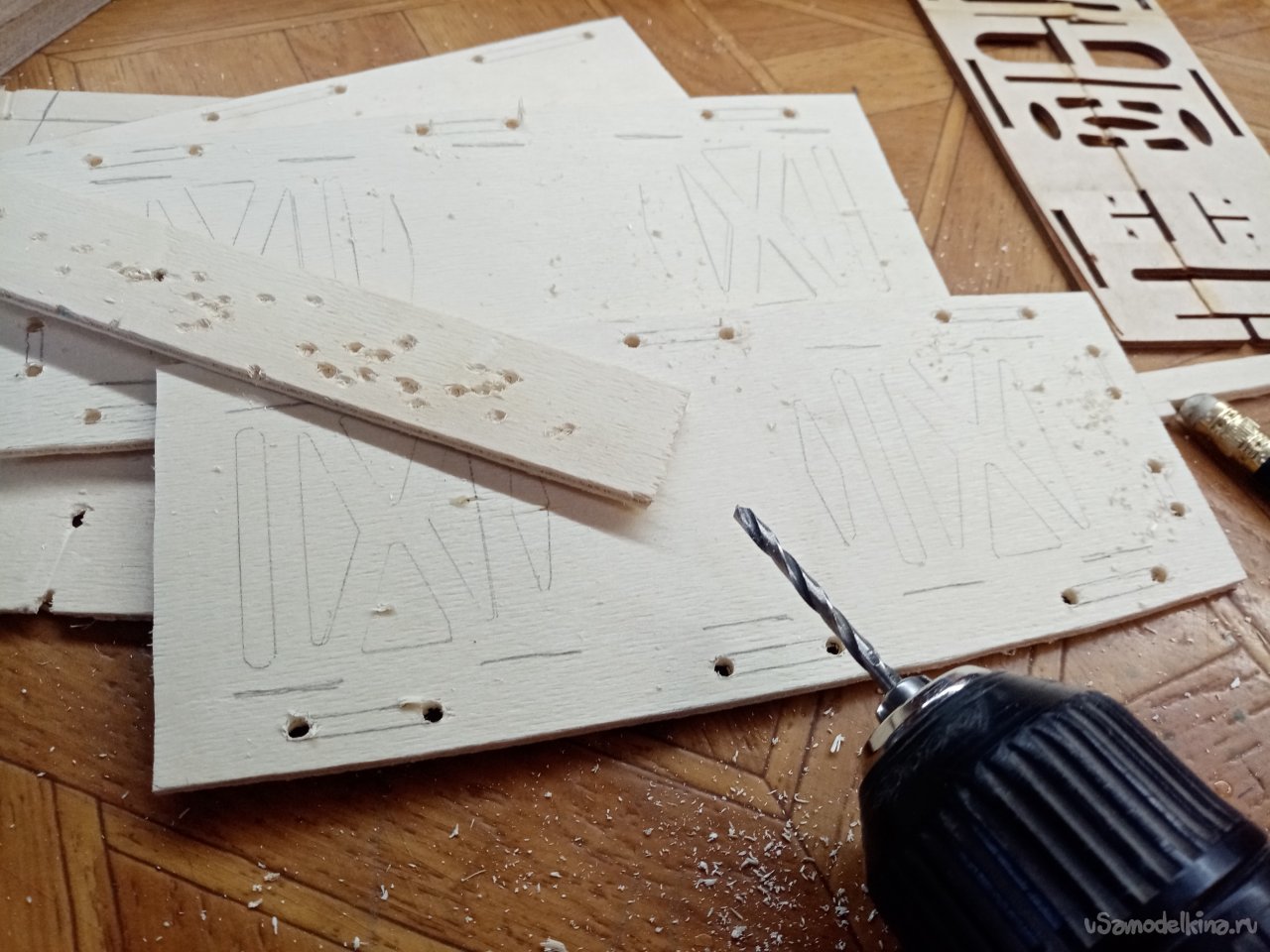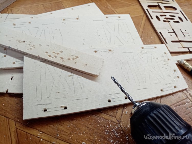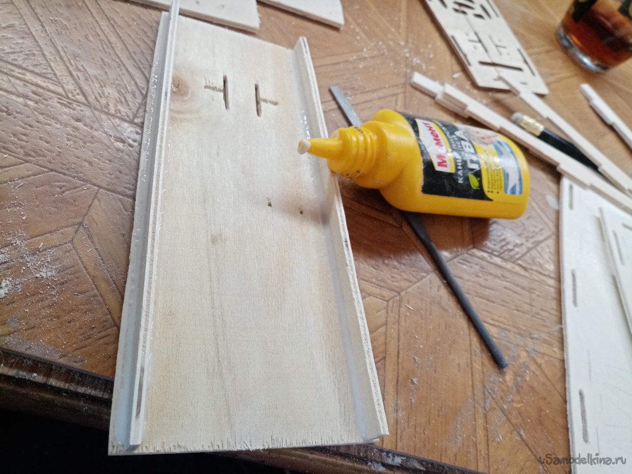 Все деревяшки соединяю на клей ПВА и на батарею. Благо отопление уже включили.