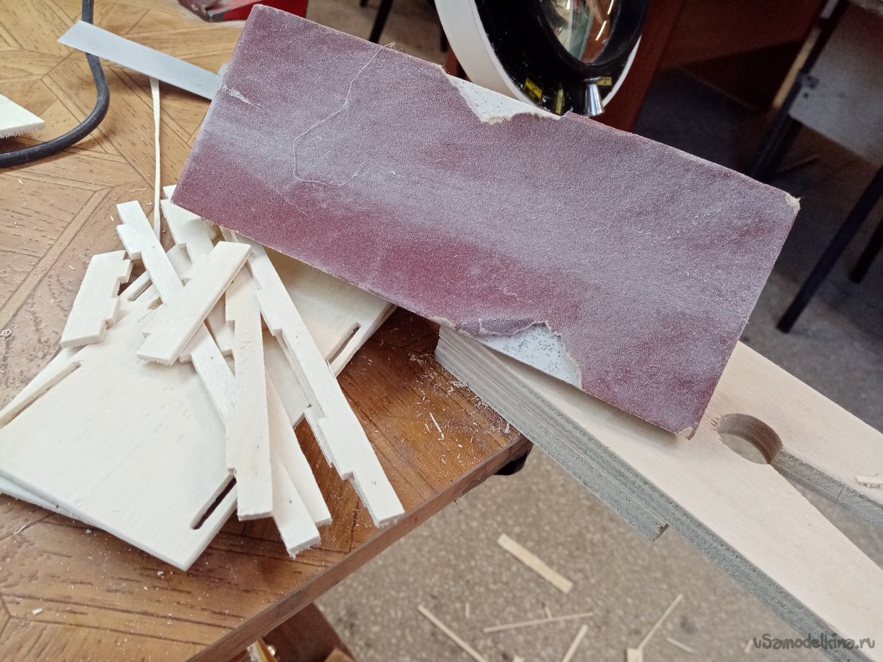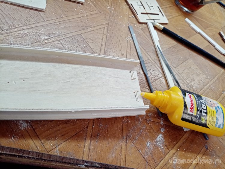 Зачищаю детали при помощи самодельного утюжка со шкуркой, немного надфилем и можно склеивать.