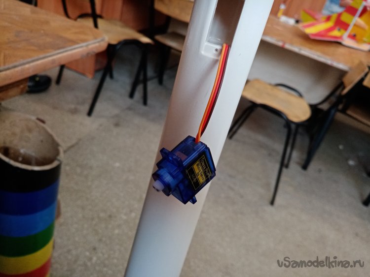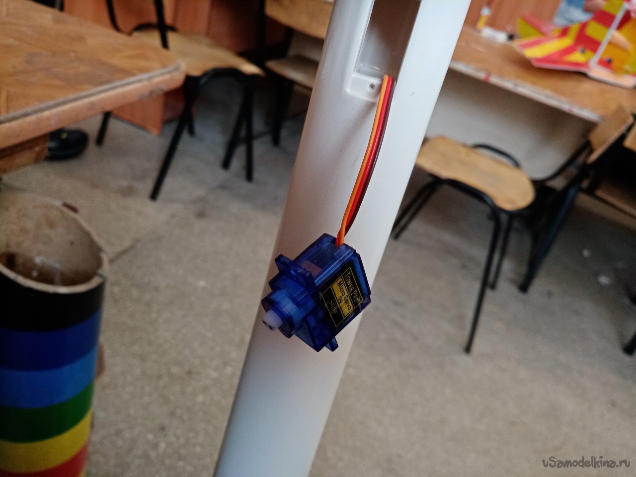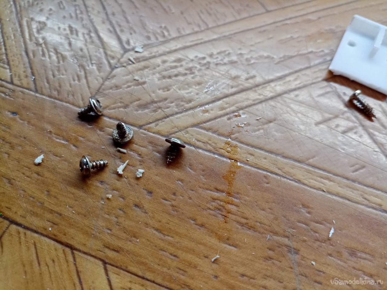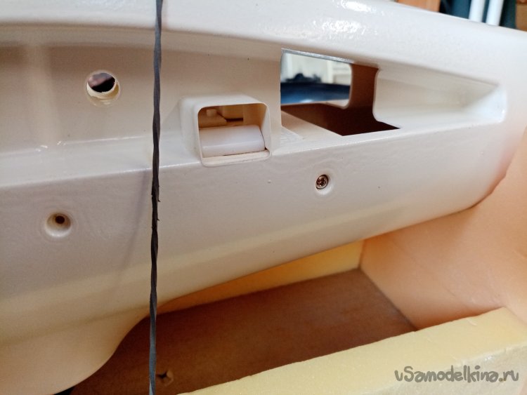 Сервоприводы закреплю в специальных нишах болтиками. На разобрал. Не нравится мне толщина пластикового корпуса в местах крепления сервоприводов. Вырезал из пластика прямоугольники и вклеил их в месте крепления лапок сервопривода. Се приклеил при помощи клея для пластиковых моделей. Но пришлось серьезно повозиться, приклеивая пластик к внутренней стенке фюзеляжа. Долго ковырялся, однако. Наконец со второго захода сервоприводы надежно закреплены. Установил тяги и фиксирующие колечки.
