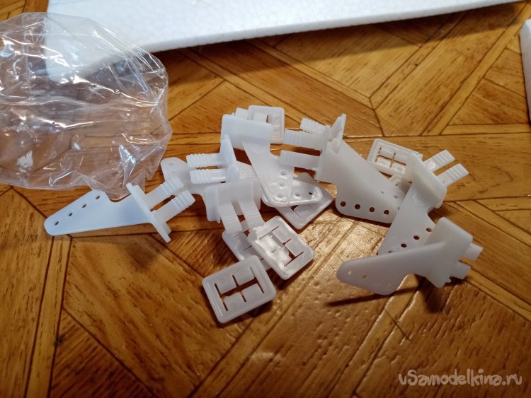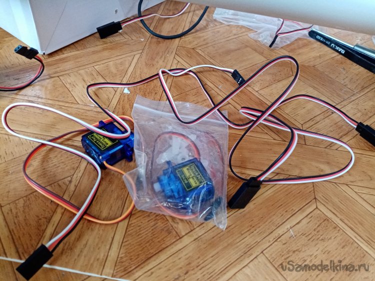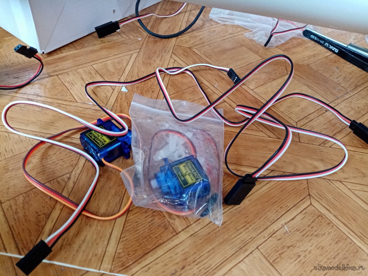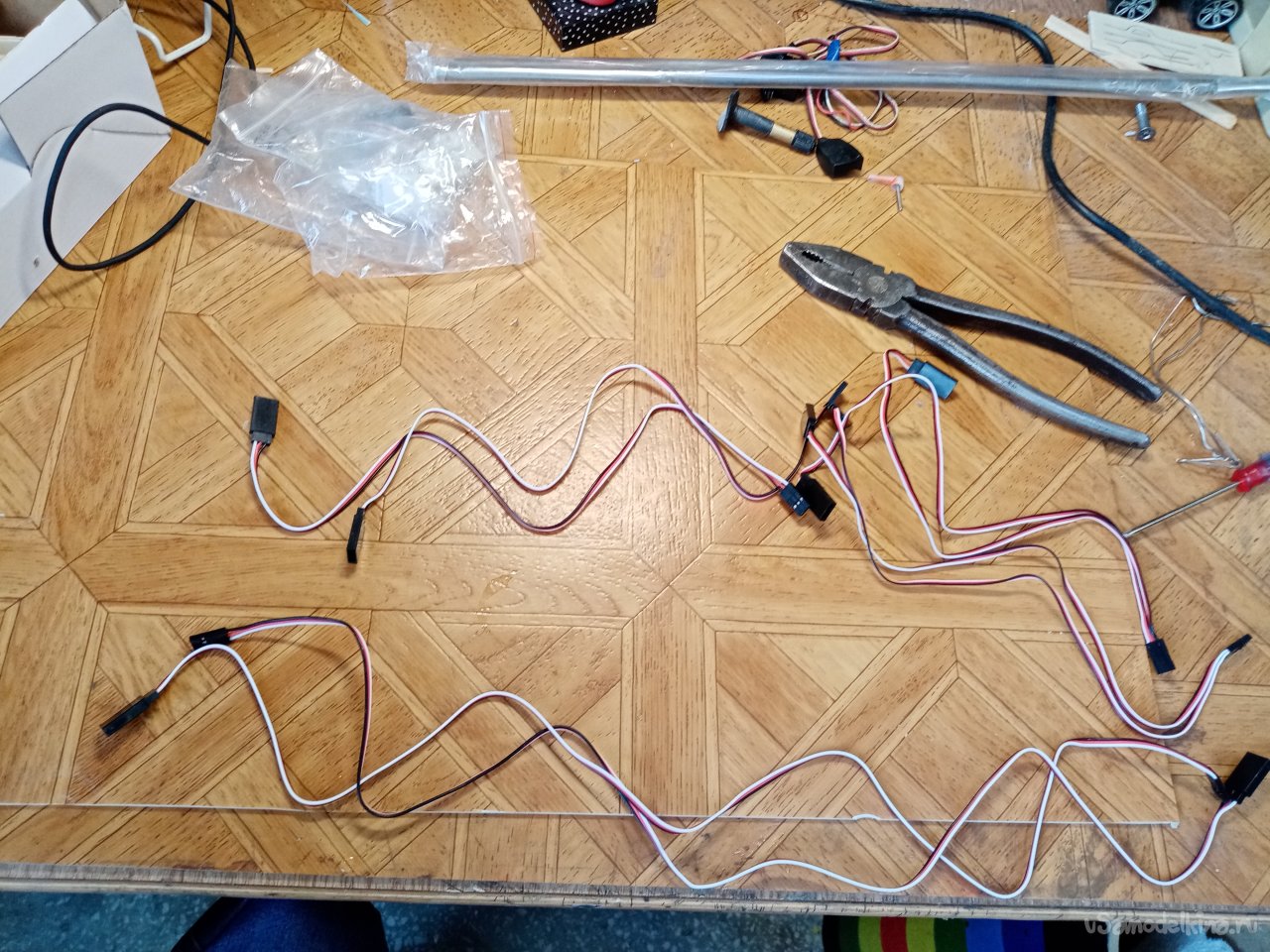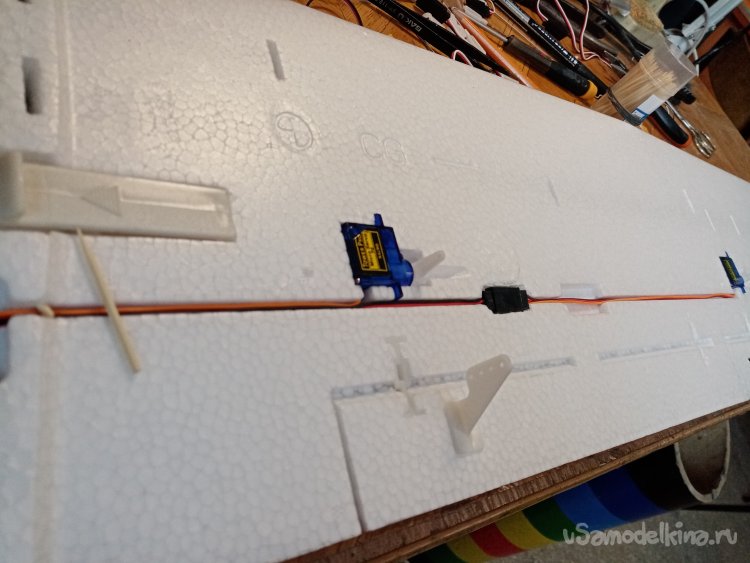 Продолжаю тему крыла. Нужно установить сервоприводы, удлинители, тяги. В такой последовательности и начну. Извлекаю нужной длины провода, сервоприводы. Обязательно проверяю перед установкой при помощи сервотестера. Будет неприятно когда все установлено, включаю, не работает. Хотя в сервоприводах брак минимальный. Но все же есть.