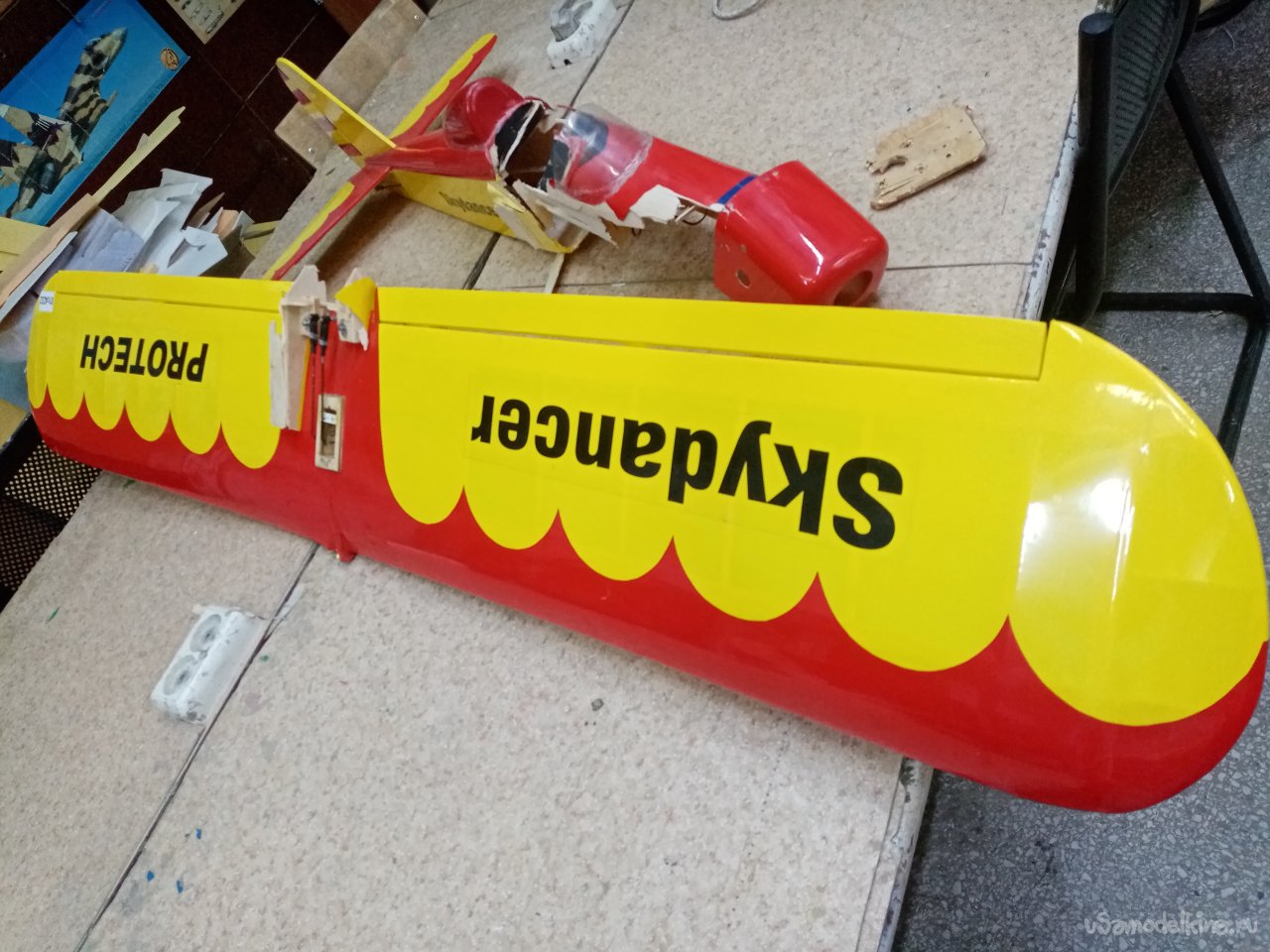 Жалко мне сломанную технику. Поэтому в чате дал объявление, принимаю битые модели, бесплатно конечно. Иногда братья пилоты подбрасывают интересные экземпляры. Конечно не всегда есть время в плотную заняться восстановлением, но я честно складываю и храню эти обломки. Этот самолетик у меня пролежал в ожидании пару лет. Вышел в отпуск и хотел восстановить нескольких моделей. Но жизнь движется и не все совпадает с моими хотелками. Полностью восстановил только этот симпатичный самолетик.