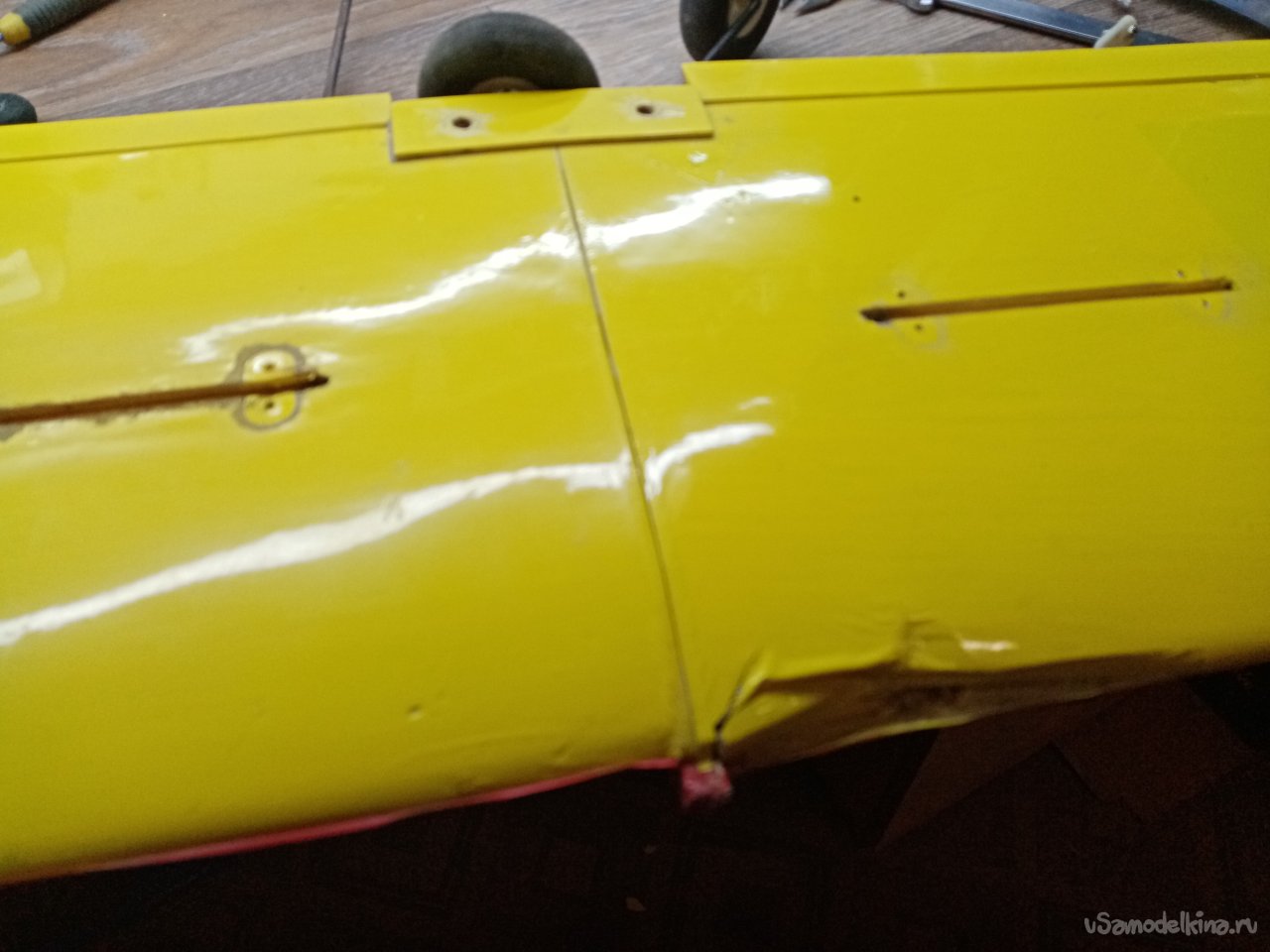 Устраняю мелкие повреждения. Полностью шлифую фюзеляж шкурками различной зернистости.