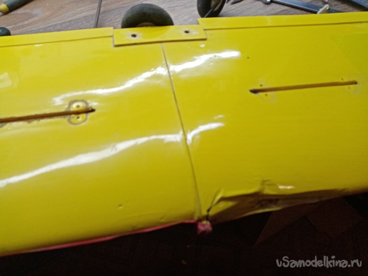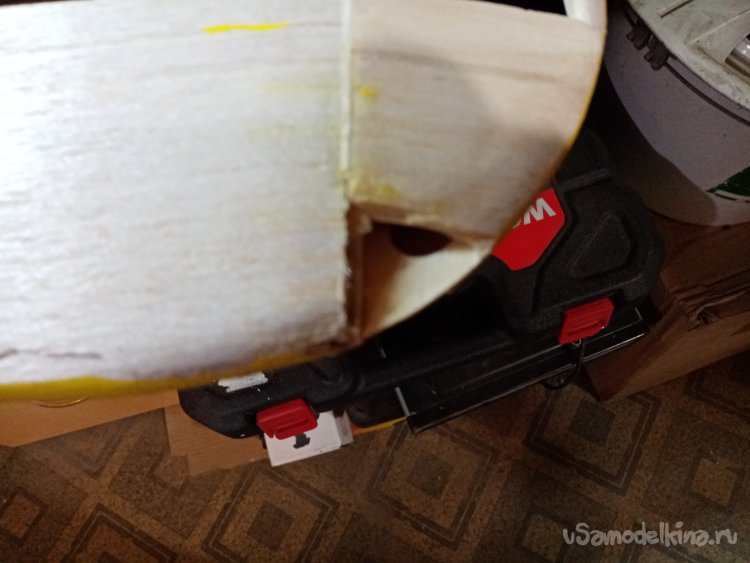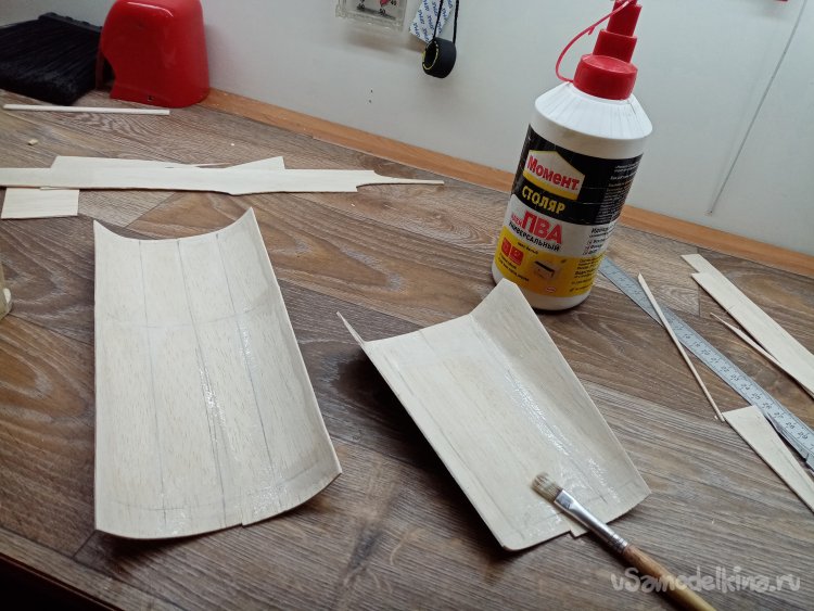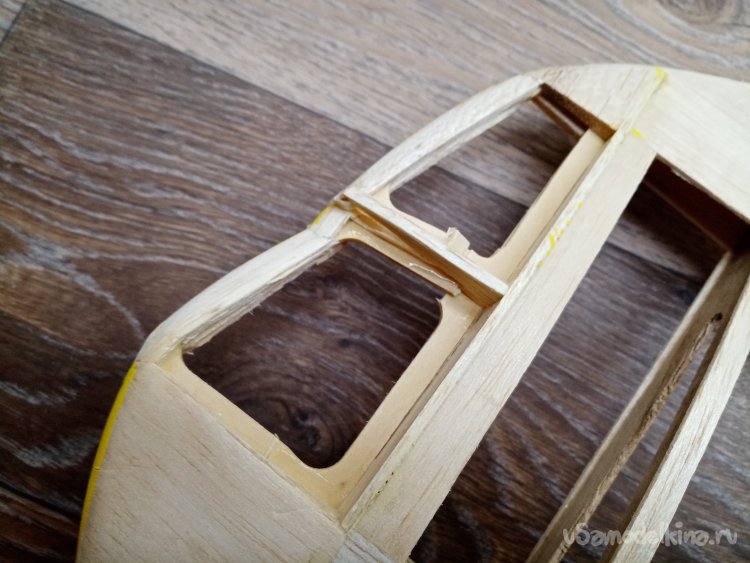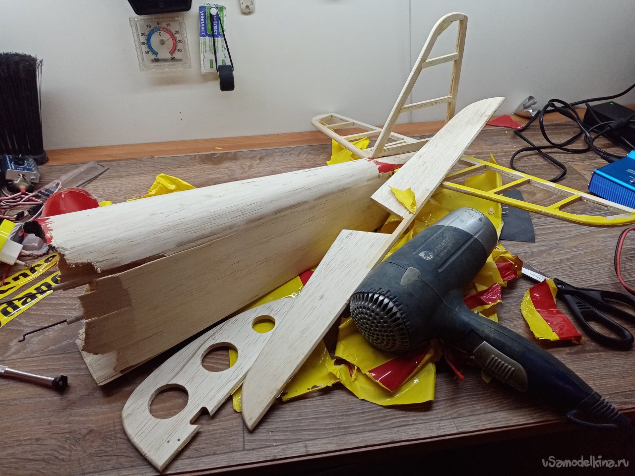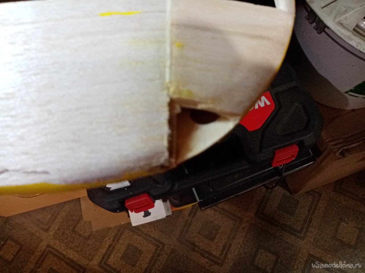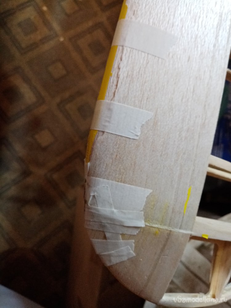 Повреждения устраняю с помощью реечек из бальзы. Заклеиваю на ПВА.