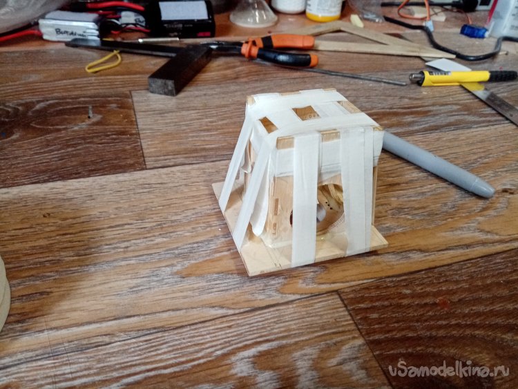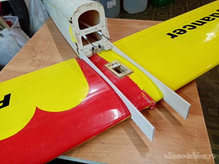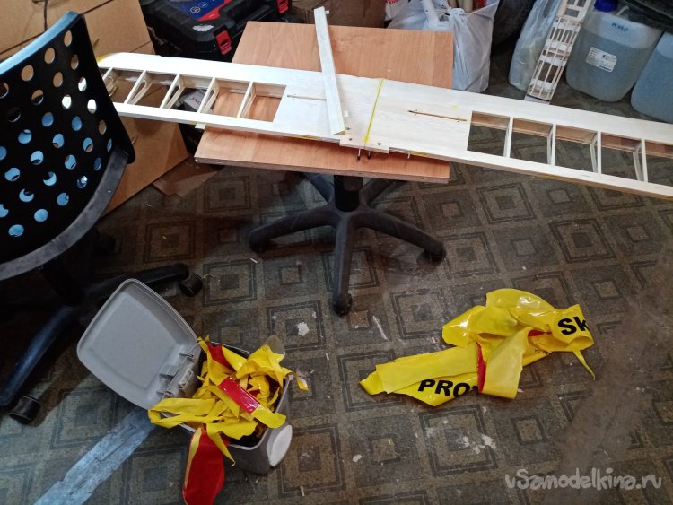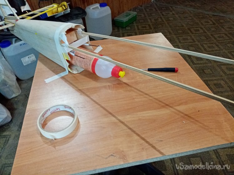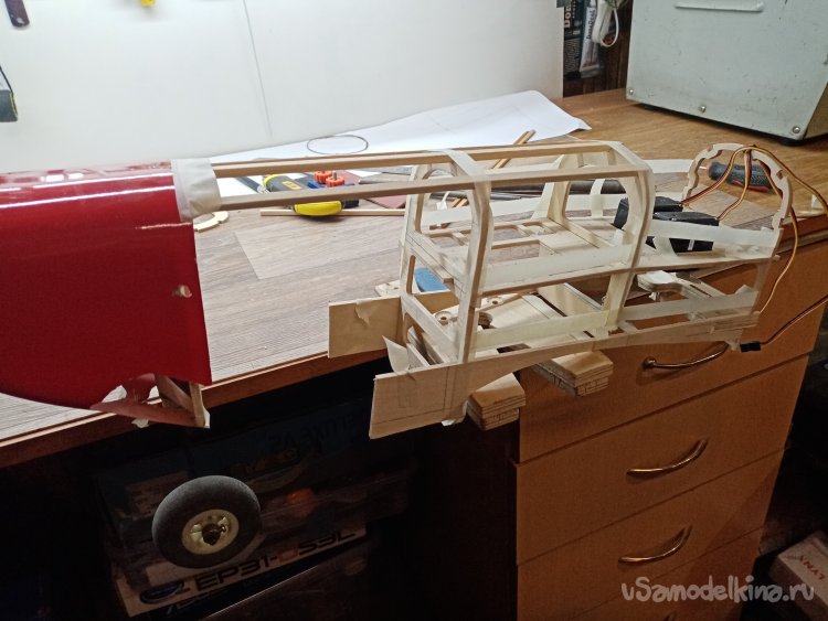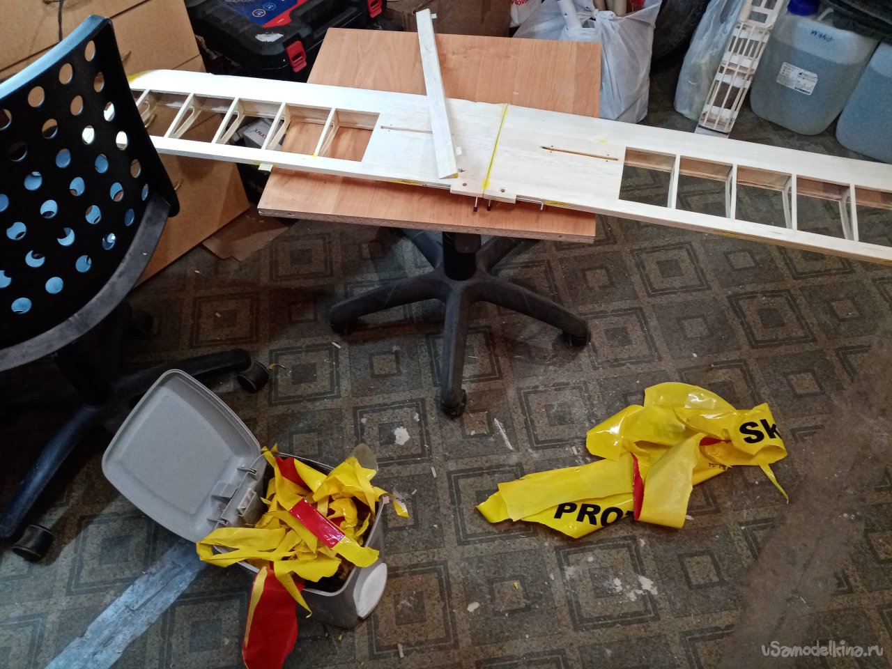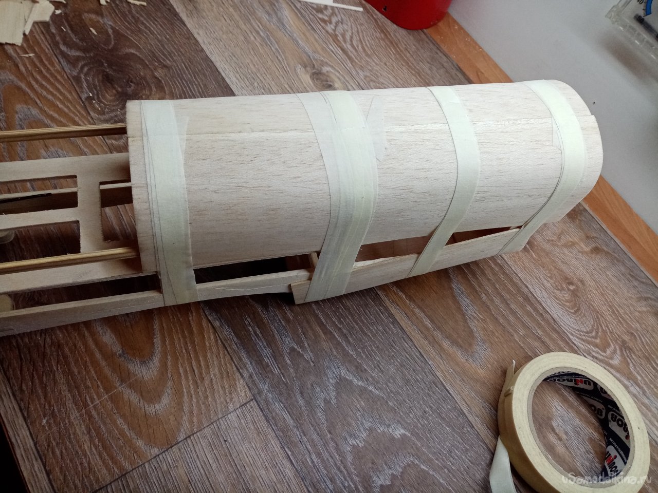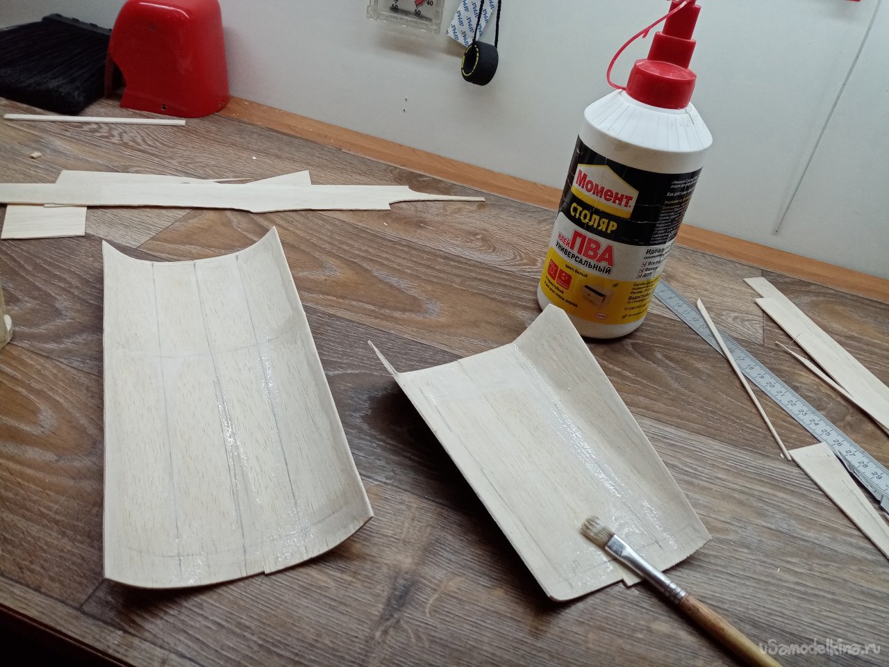 Повреждения устраняю с помощью реечек из бальзы. Заклеиваю на ПВА.