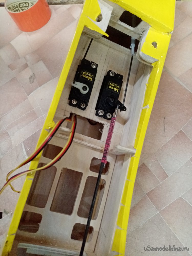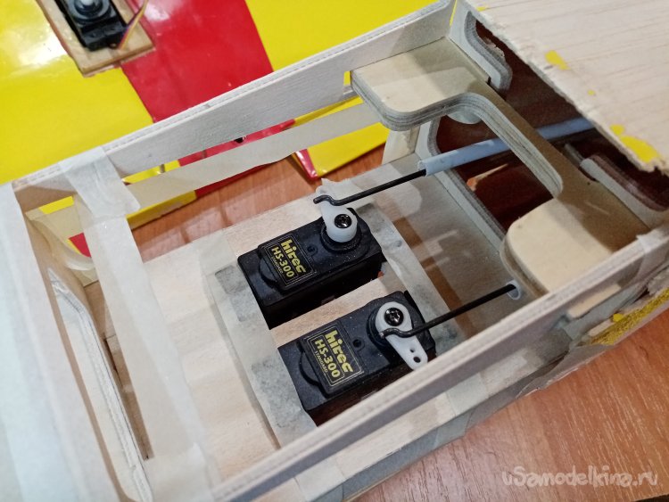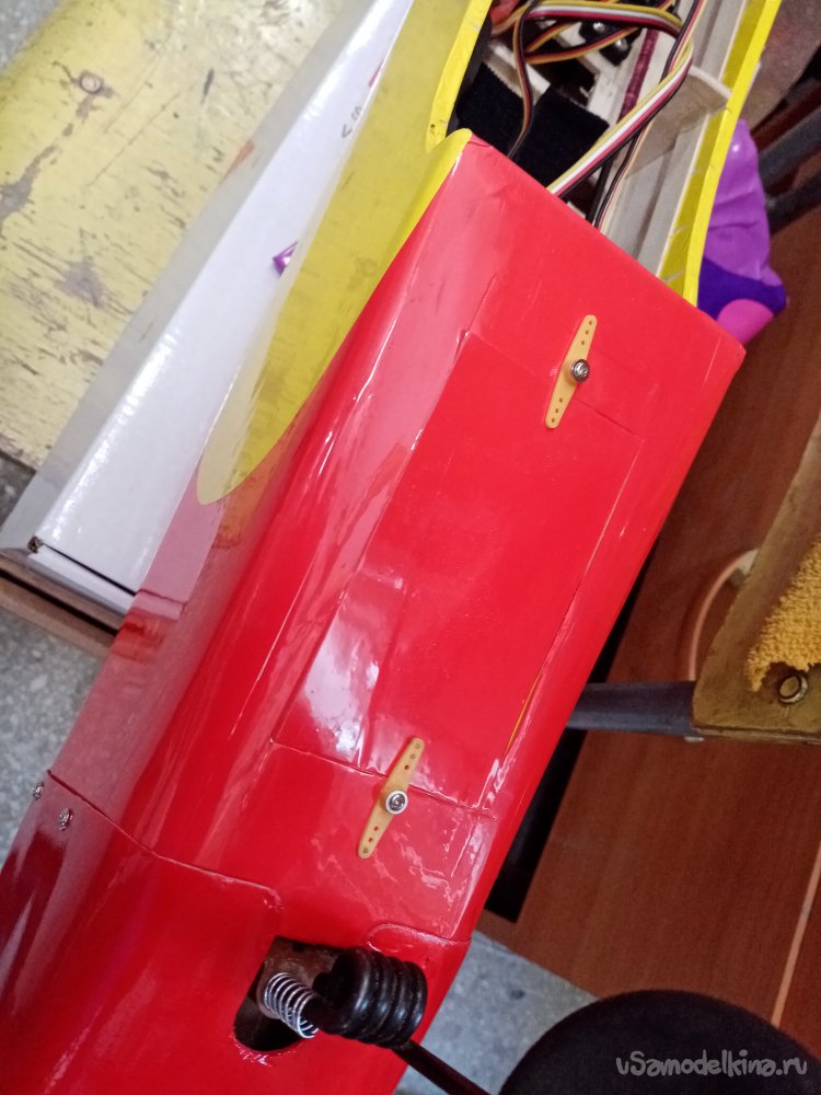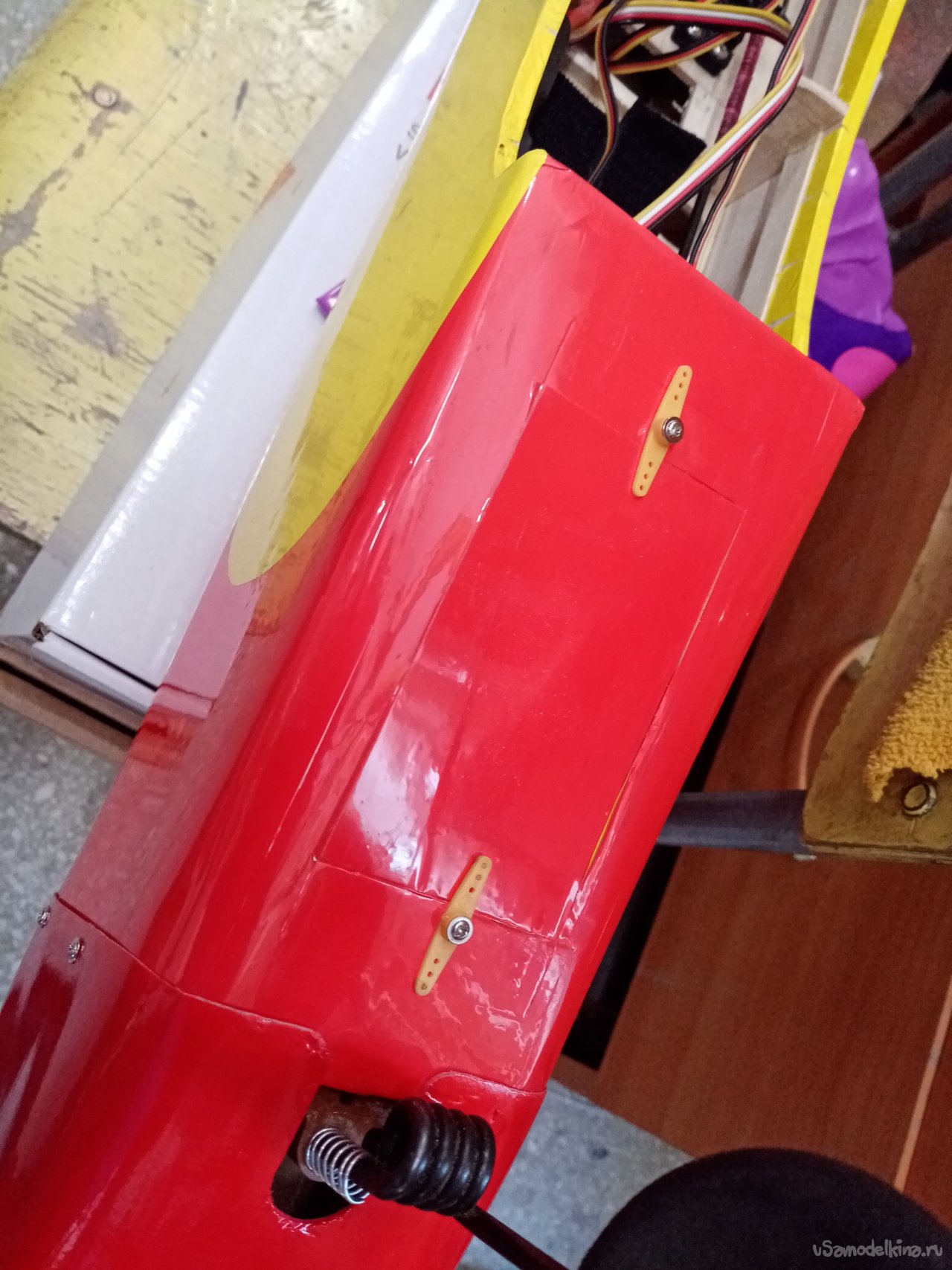 После застывания клея соединяя. Носик и хвостик. Примерял сервоприводы. Стоят на месте точно.