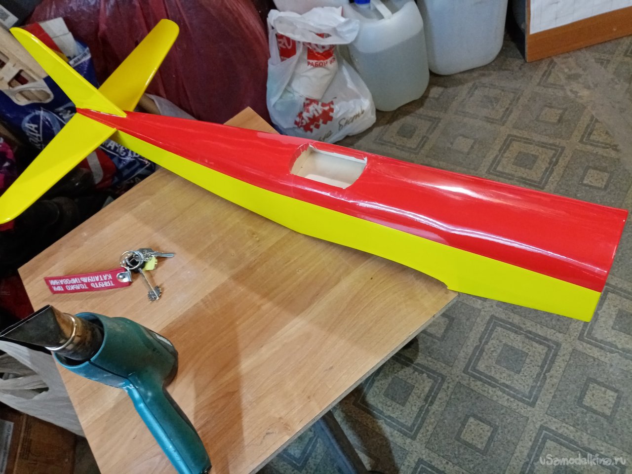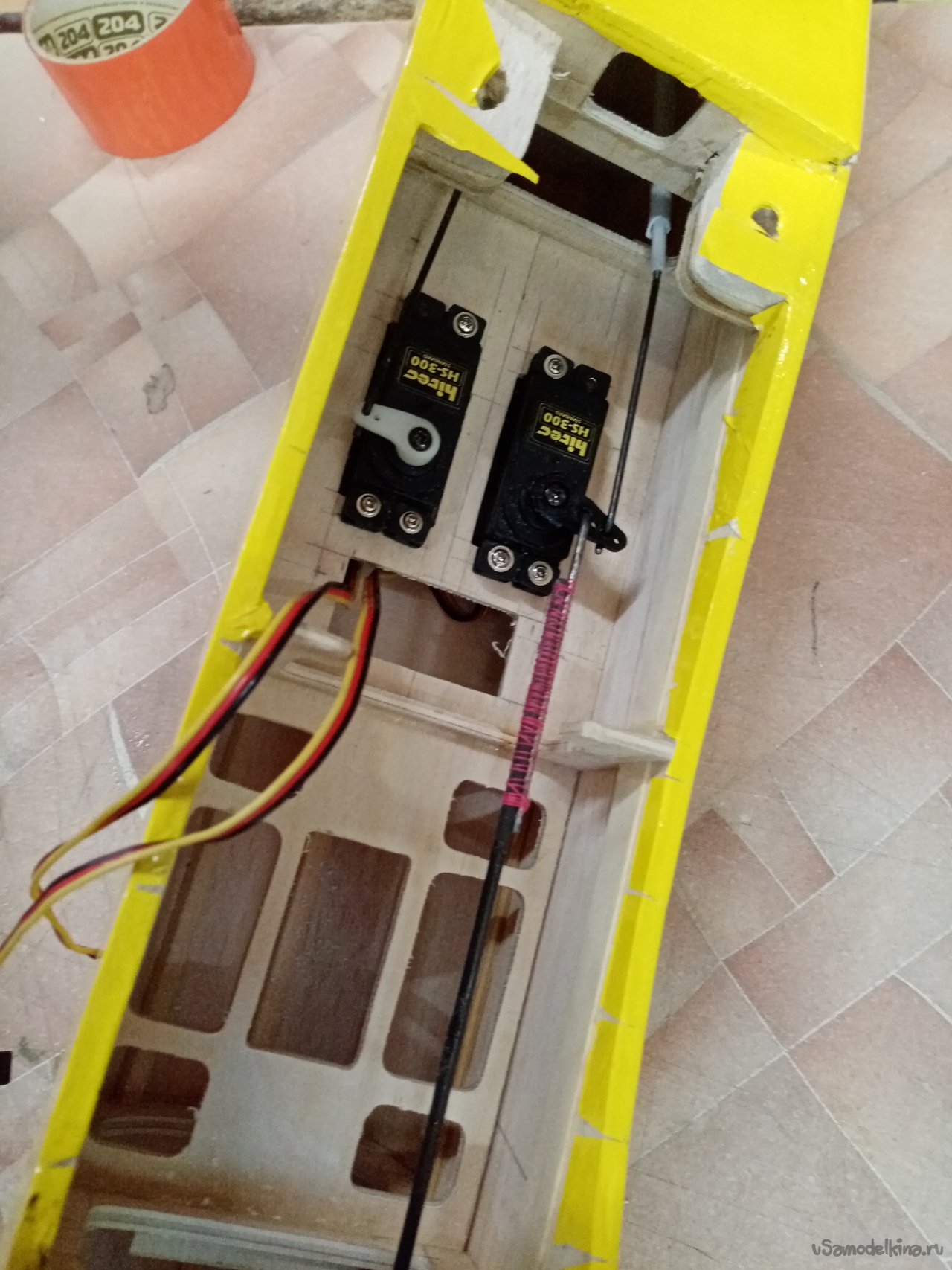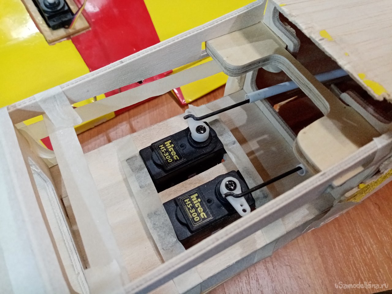 После застывания клея соединяя. Носик и хвостик. Примерял сервоприводы. Стоят на месте точно.