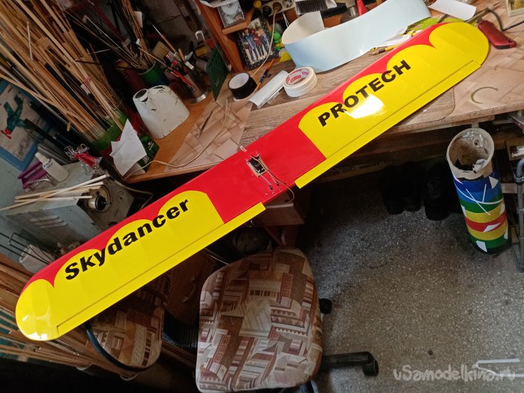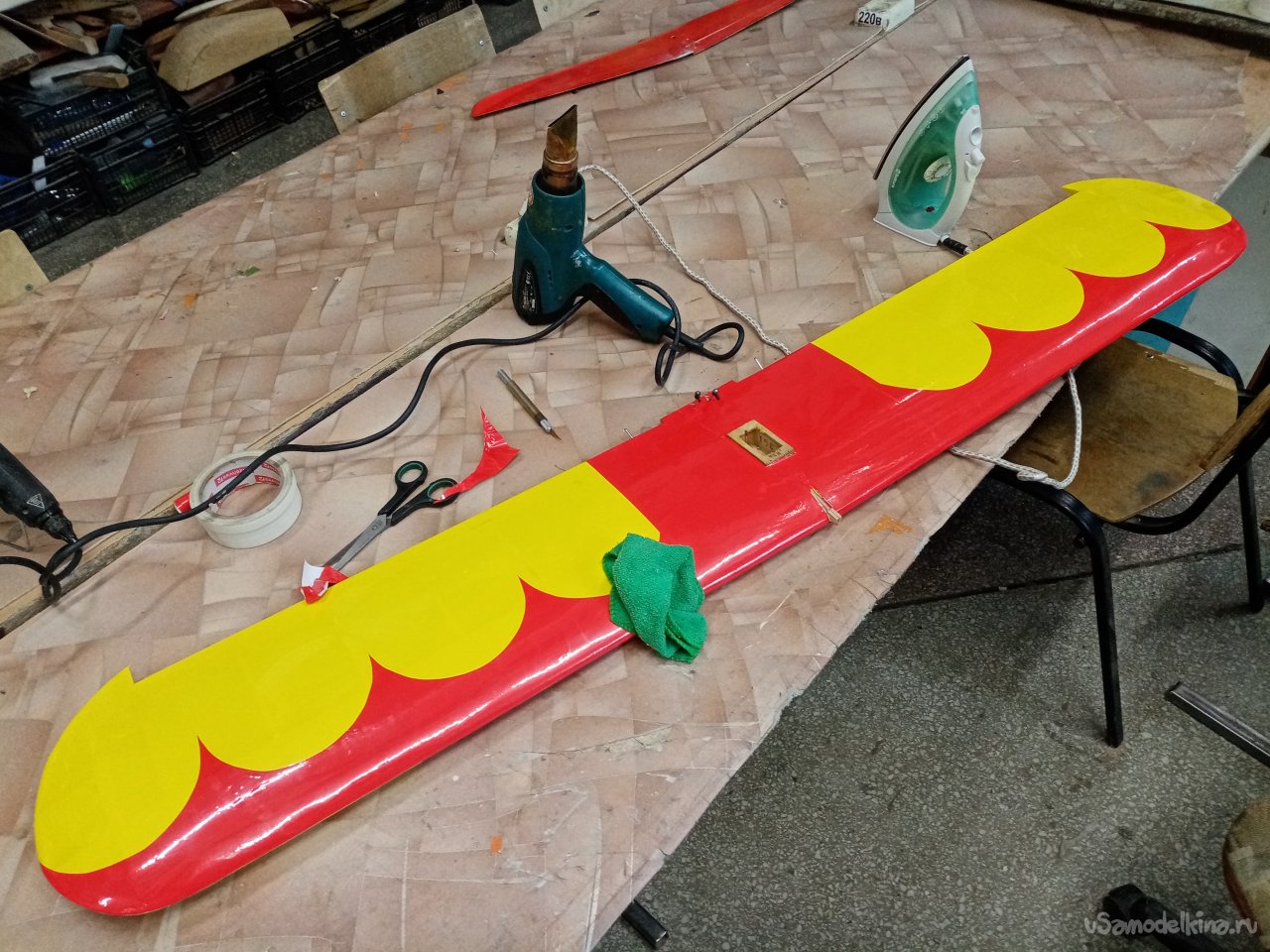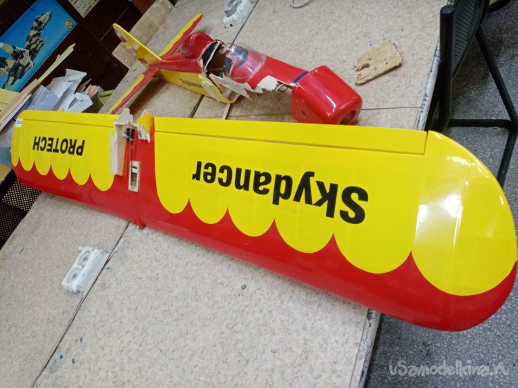 Еще раз проливаю клеем все стыки в конструкции. Пока сохнет плавно перехожу к крылу. Снимаю обшивку, такая же картина не очень хорошая бальза. Ладно, прорвусь. С пленки обшивки срезаю аккуратно все надписи. Буду восстанавливать в оригинальной ливрее.
