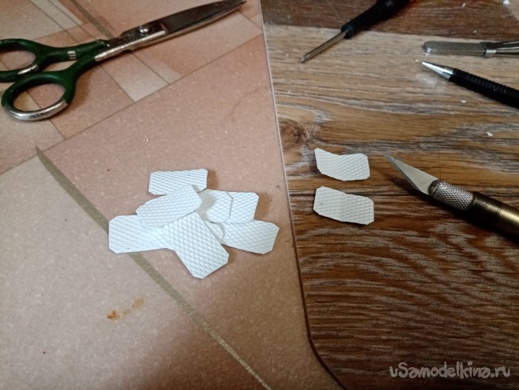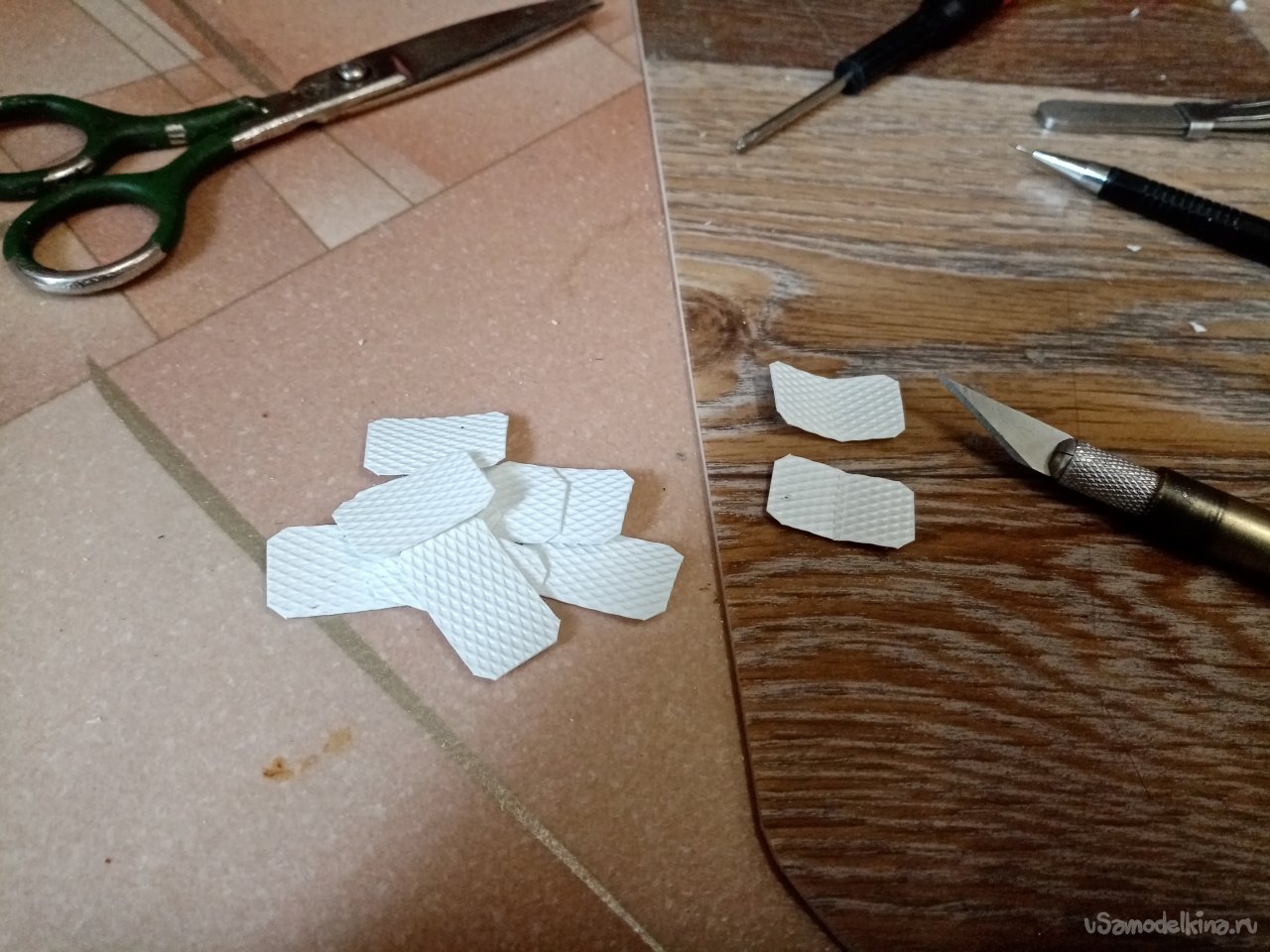 Навешиваю все подвижные элементы на самодельные петли из упаковочной ленты.