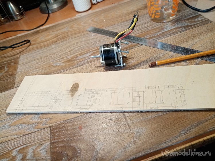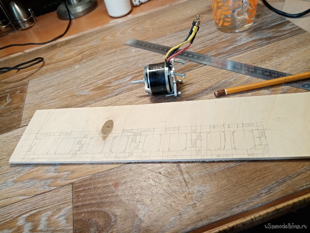 Данный самолетик рассчитан на нитродвигатель. Буду переделывать на электро. Подобрал мотор. Нужно определить размеры моторамы.