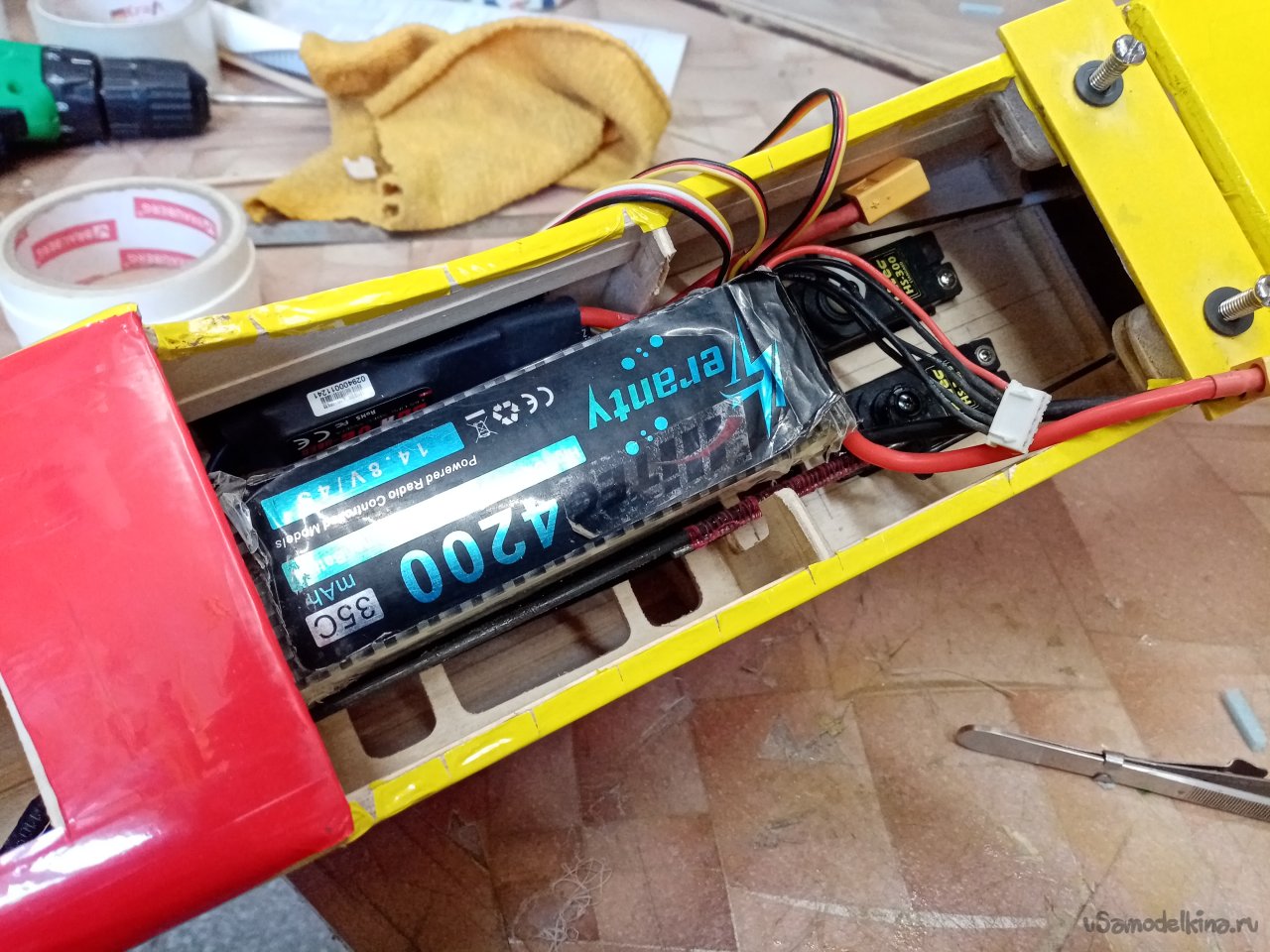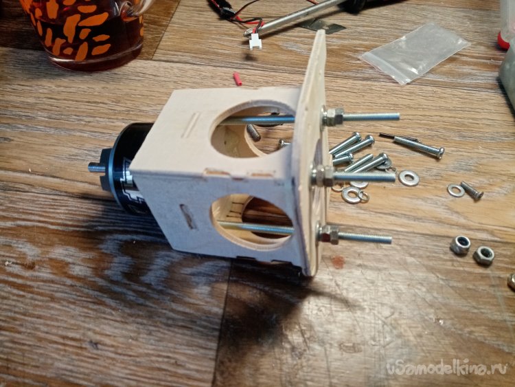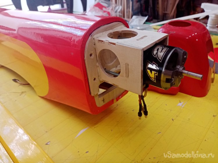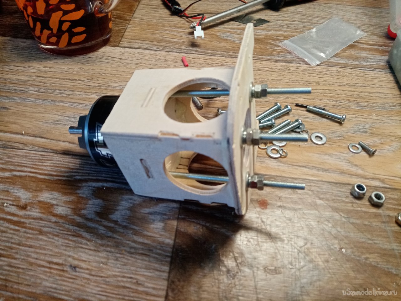 Центровка слегка задняя, тут стесняться не нужно. Решил изготовить съемный вариант на длинных болтах. Которые проходят через крепление двигателя, мотораму и переднюю стенку фюзеляжа. В этом варианта можно будет сменить двигатели и под него мотораму.