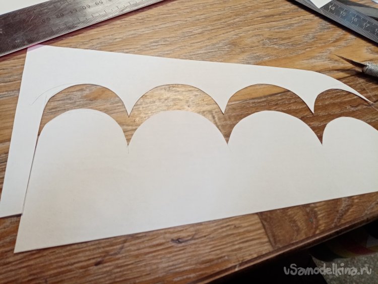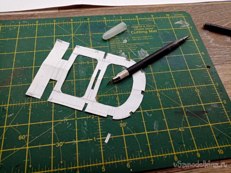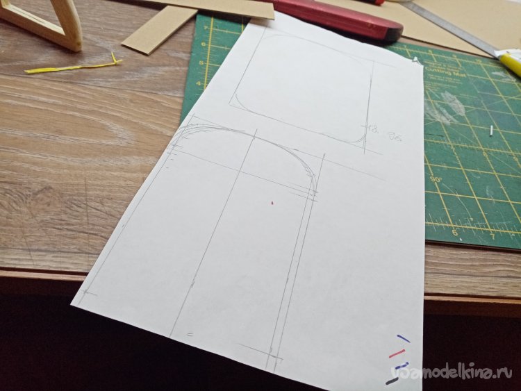 Предварительный набросок основного шаблона, сразу за отломанной частью. В процессе конечно нужно будет корректировать размеры. Можно и по-другому подойти к этой проблеме. Но мне нравится так работать, методом тыка. Я бы сказам по интуиции, очень занимательно, попаду в размер с первого раза или приходится немного переделать конструкцию.