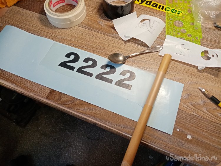 Нарисовал шаблон на такие загогулины. Не разу не наклеивал пленку на пленку. Полез в интернет, посмотреть, как и что. Получилось без брака.