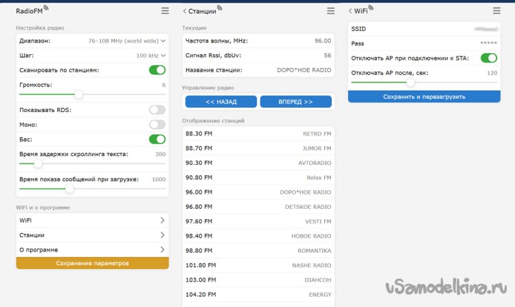 - через веб-интерфейс можно менять частоты и названия станций. Следите, чтобы частоты не повторялись (контроля нет), станции вводить только латиницей. Интерфейс вроде интуитивно понятный - можно разобраться, что за что отвечает.