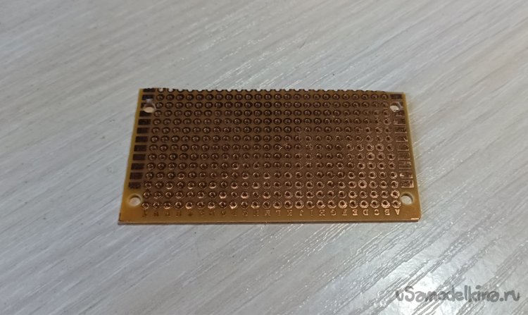 Плата вырезается из прототипной платы подходящего размера. На рисунке приведены расстояния между отверстиями.