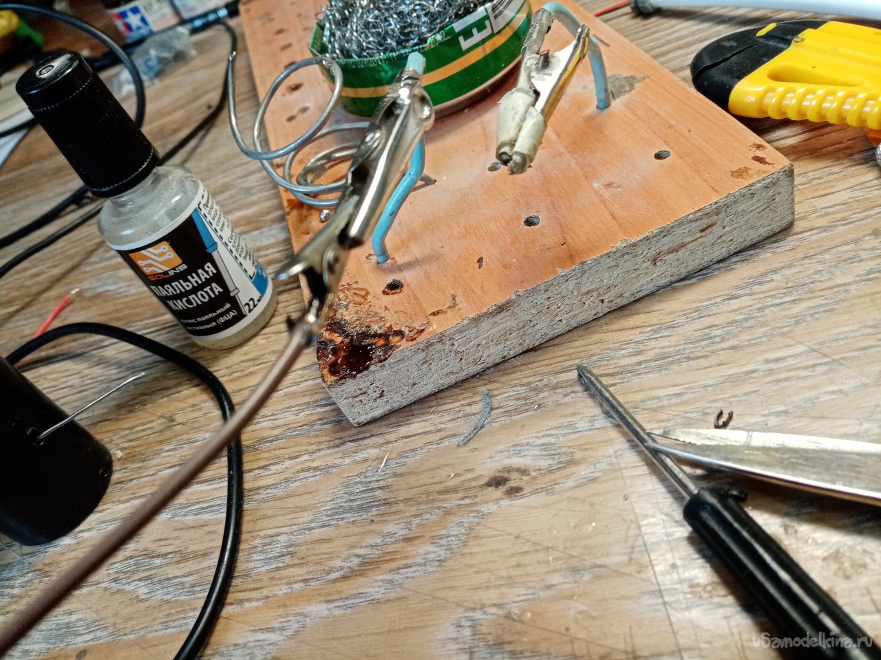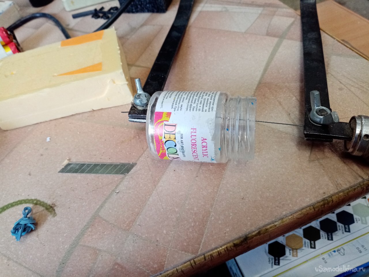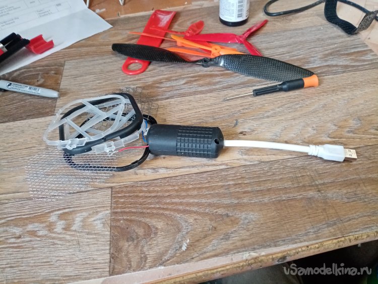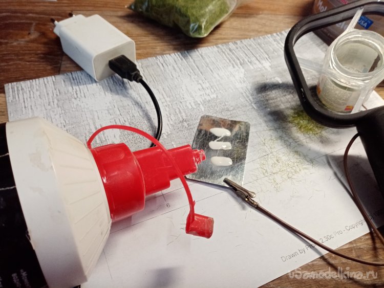 Последнее действие немного закрепляю конец провода циакрином в ручке. Флокатор готов нужно изготовить диораму и проверить получше. Чего такого свалял.