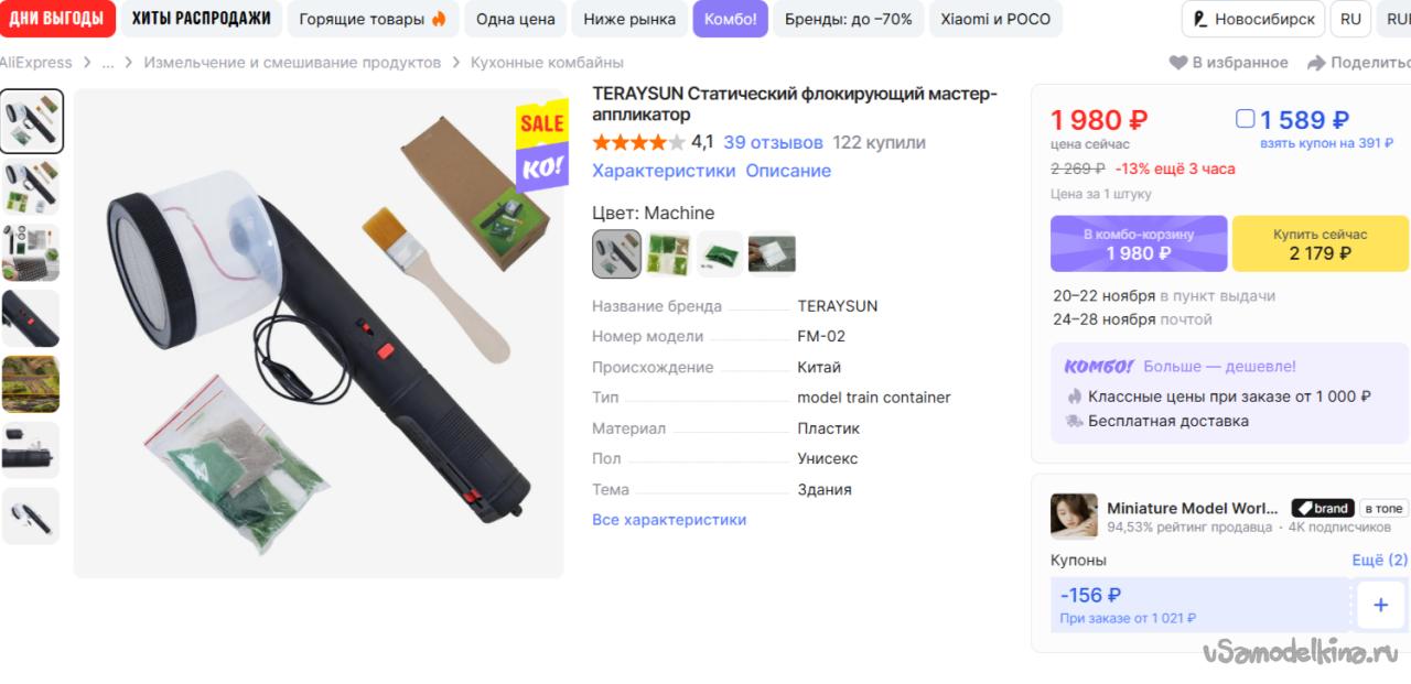 Продавцы, конечно, погорячились по поводу мощности. Но мне не нужно засевать гектар. У меня будут в дальнейшем маленькие диорамы. Тешу себя мыслью. Что самодельное устройство мне подойдет по мелочам. Заодно заказал специального флока, для имитации травы 4 и 5 миллиметров длиной.