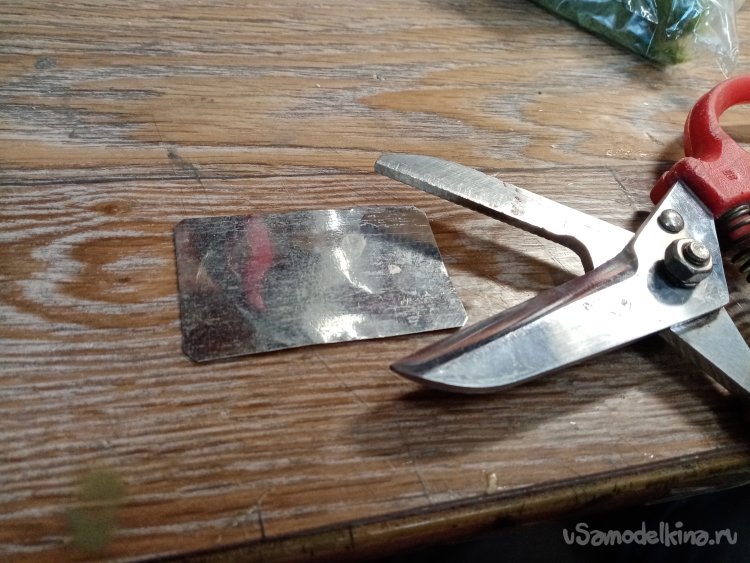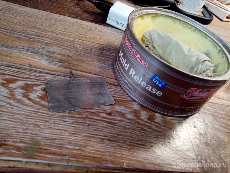 Проверяю на реальную работоспособность. Достаю пакетики с флоком. Нужно изготовить базу. Её вырезаю из жести от банки. Протираю специальной ваксой. Капельки клея должны легко отделяться при высыхании.