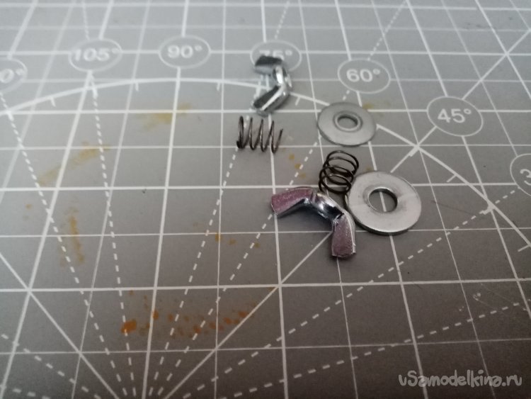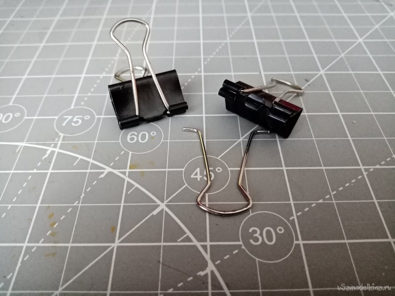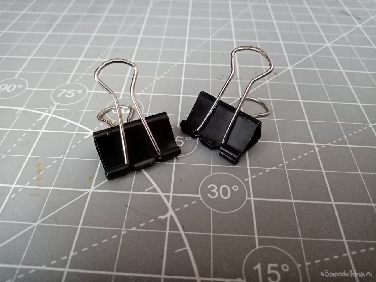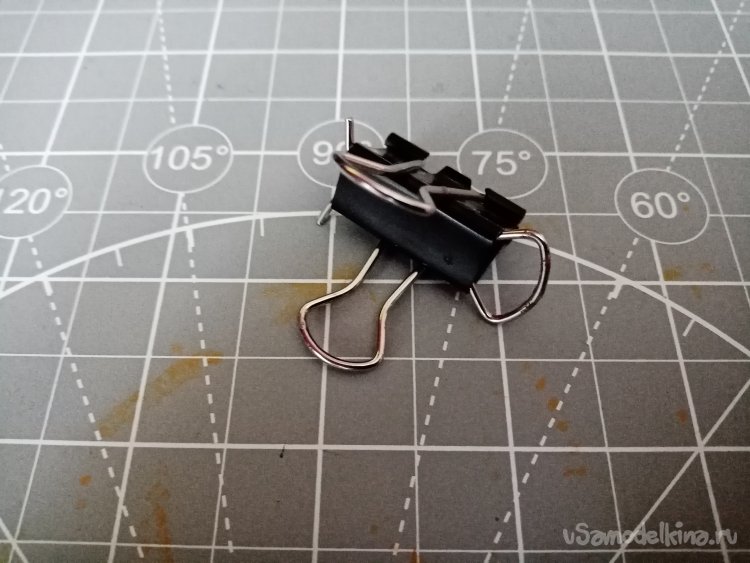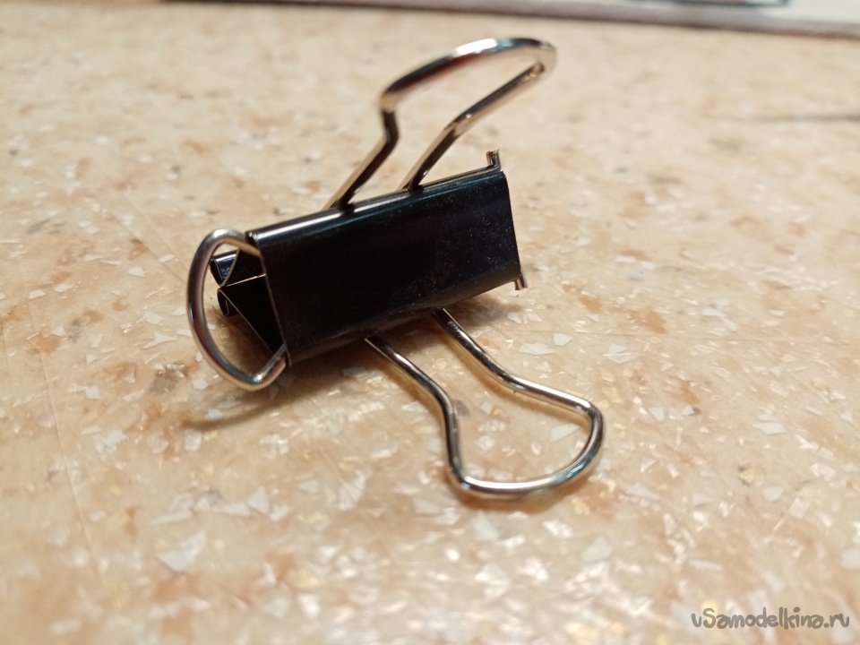 Правда, для изготовления прижимного устройства пришлось немного модернизировать зажим. Из двух собрать один. Для этого извлекаю пружину и вставляю в верхнюю часть. В работе использую зажимы разного размера и нужное количество.