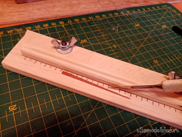 Самая большая трудность в изготовлении стендовой модели корабля изготовление досок обшивки. В свое время изготовил несколько приспособлений, значительно облегчающих эту операцию. Имитирую обшивку гоночной яхты.