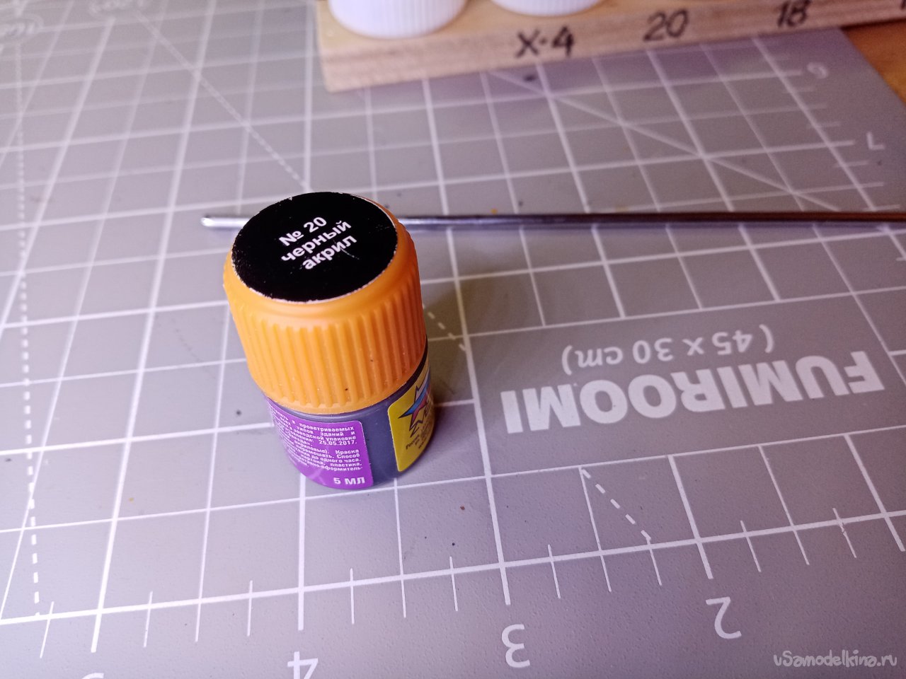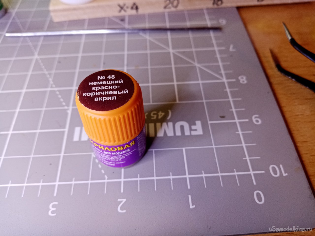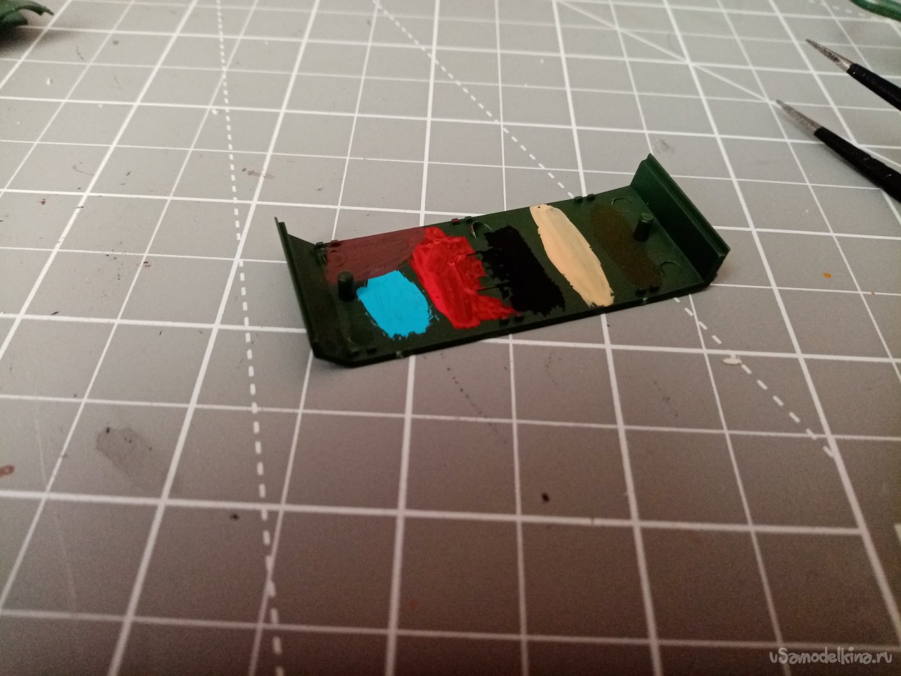 Для интереса совершаю еще одну попытку окраски пластиковой детали кисточкой. В бой вступаю акрил от «звезды» и акрил «мастер от звезды». Небольшие детальки кроет хорошо, но по плоскости получается похабно. Ладно, попытка завершилась неудачей.