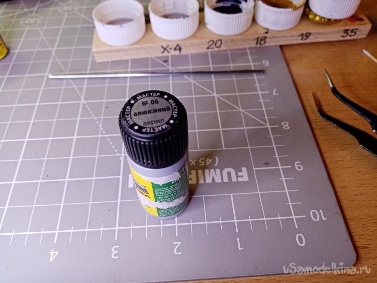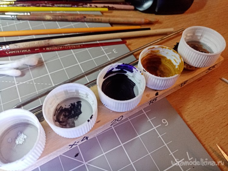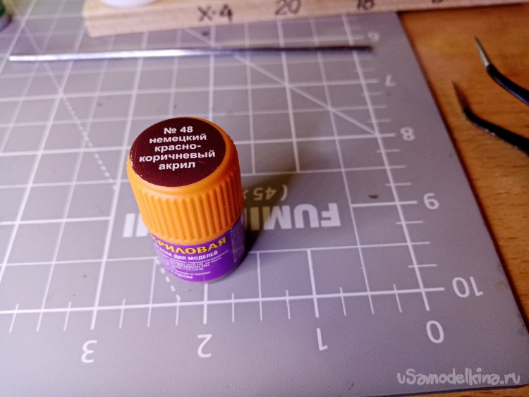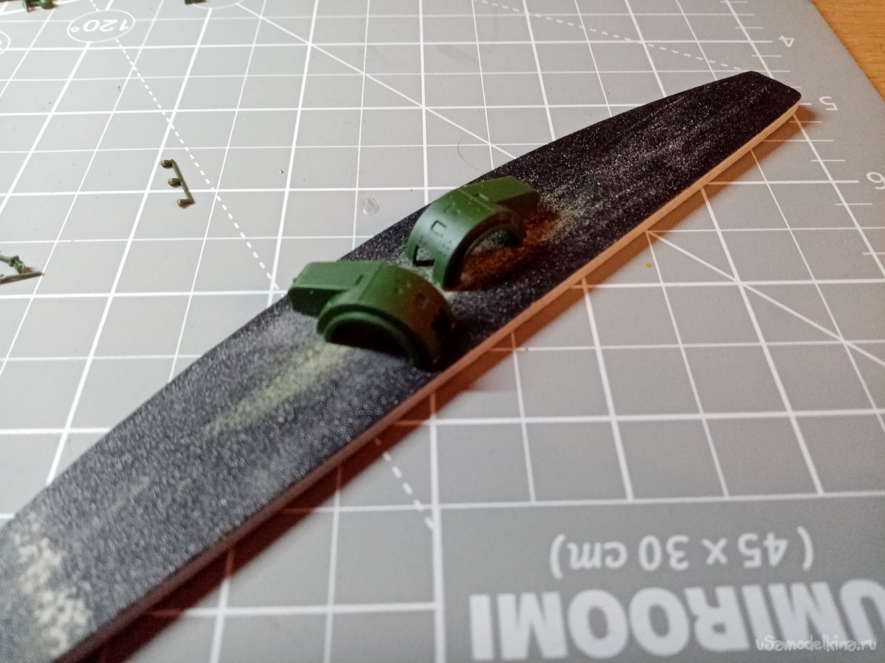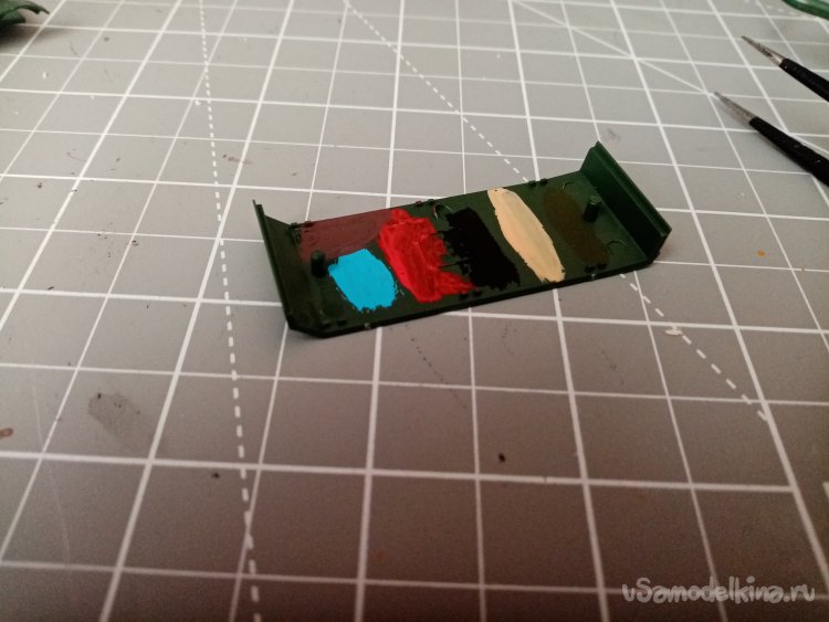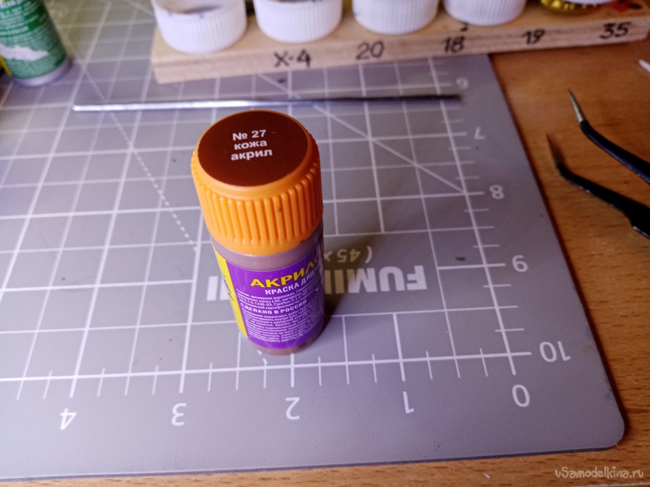 Для интереса совершаю еще одну попытку окраски пластиковой детали кисточкой. В бой вступаю акрил от «звезды» и акрил «мастер от звезды». Небольшие детальки кроет хорошо, но по плоскости получается похабно. Ладно, попытка завершилась неудачей.