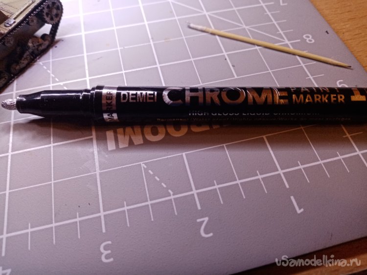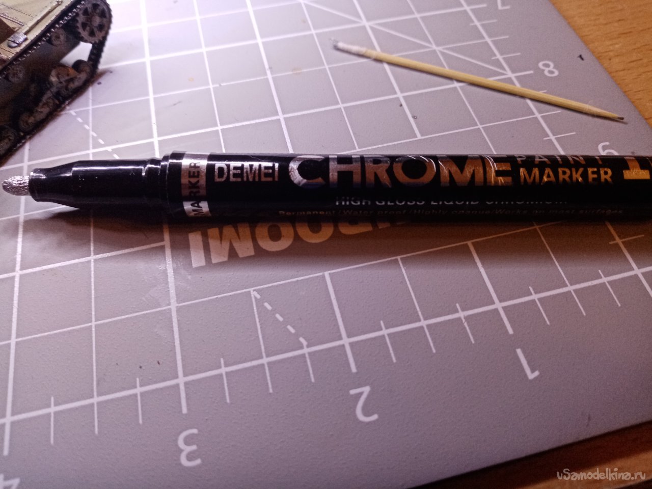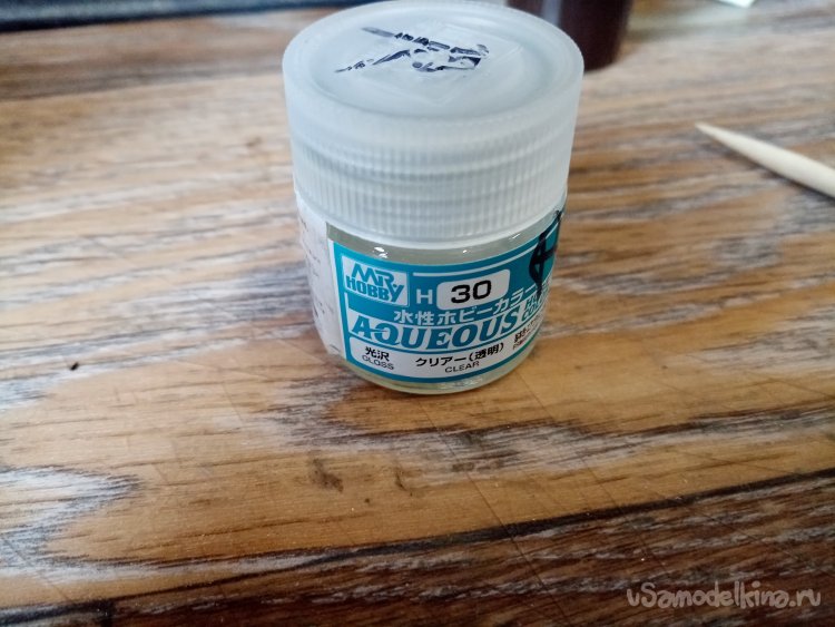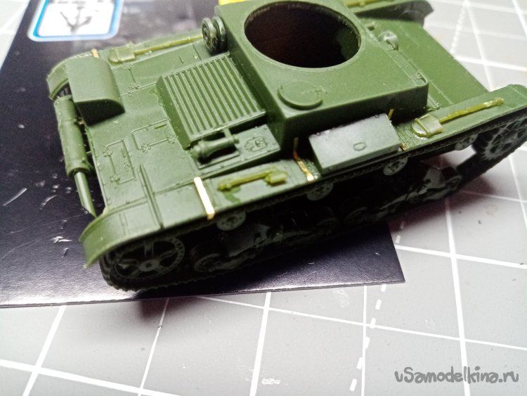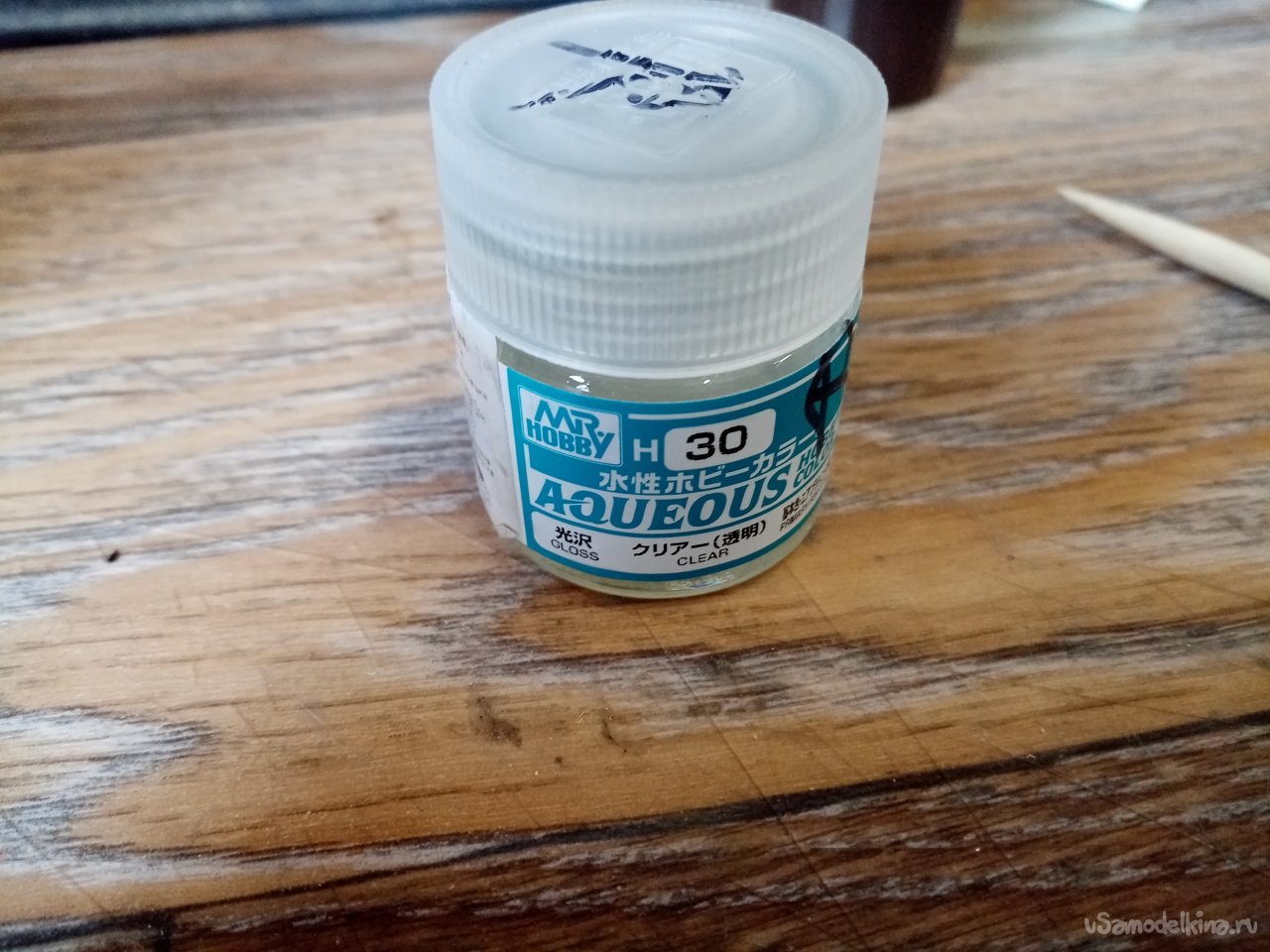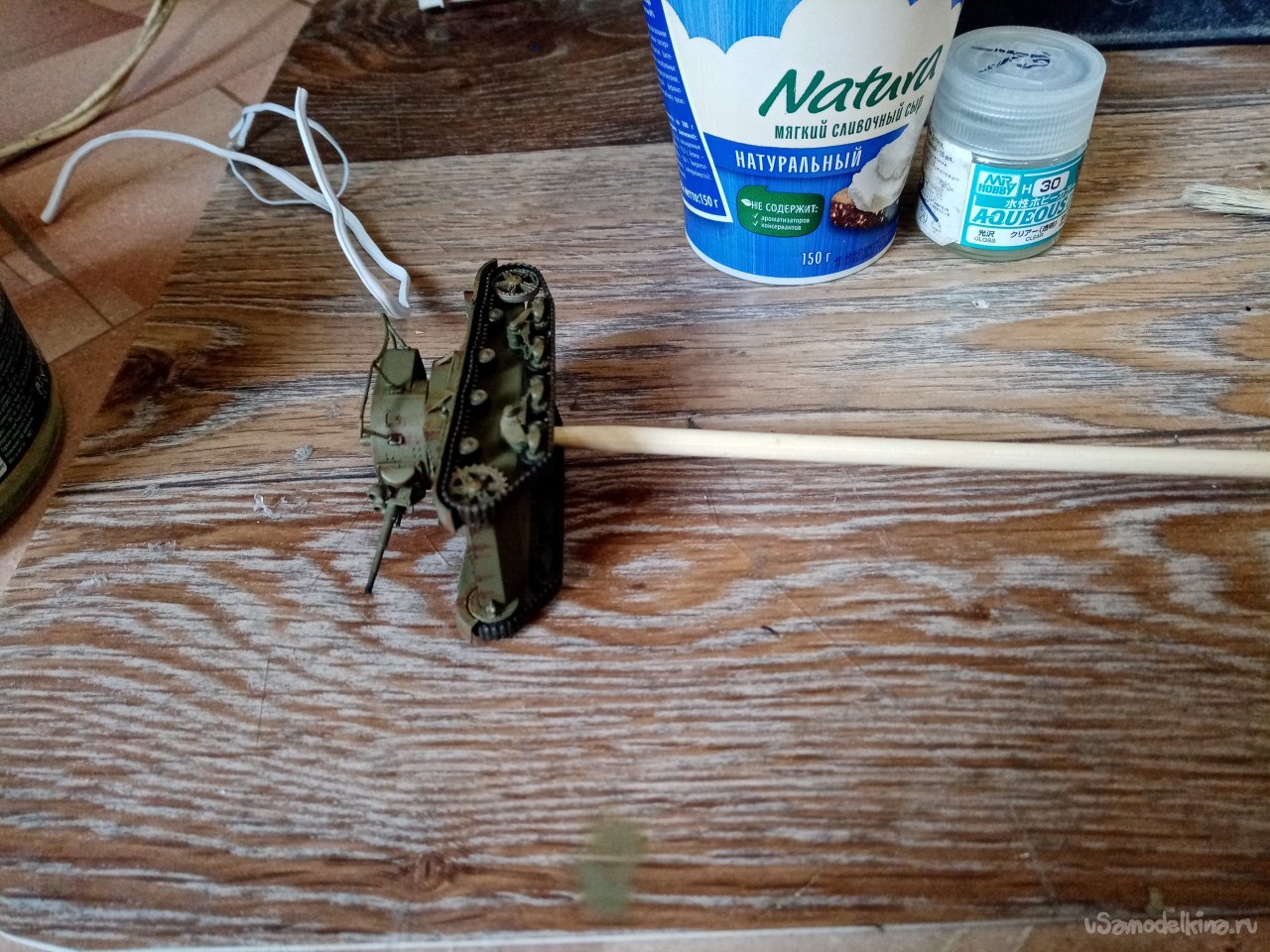 Переношу танк в моделку. В коробочке есть все нужное. Полуматовый лак вступает в дело.