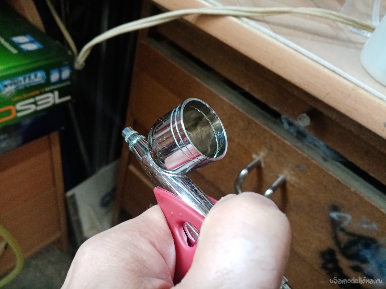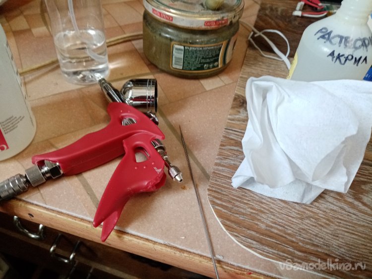 Последняя промывка чистым спиртом окончательно смывает остатки акрила из аэрографа.