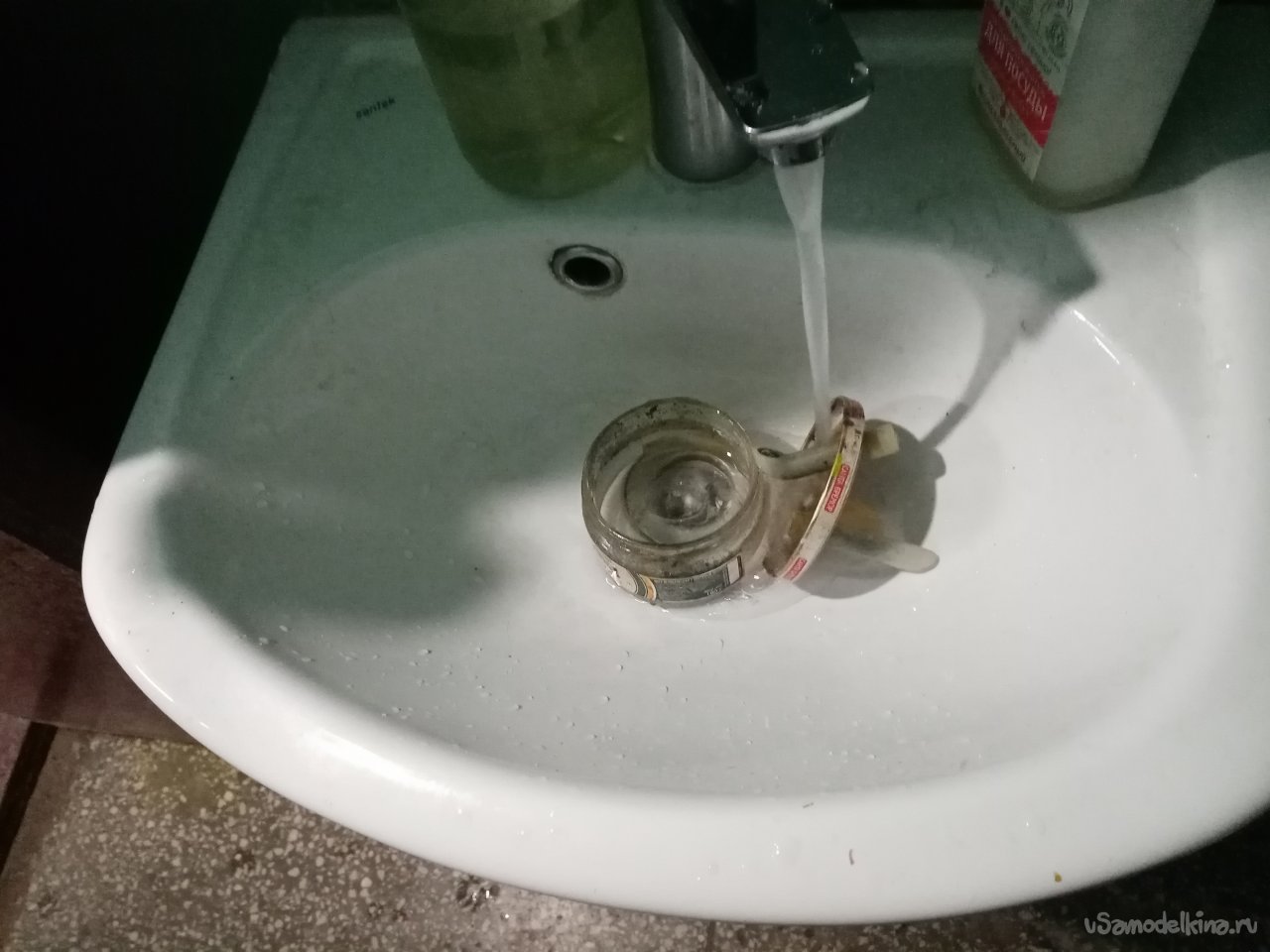 После работы сливаю грязную воду из промывочной банки и споласкиваю её чистой водой.