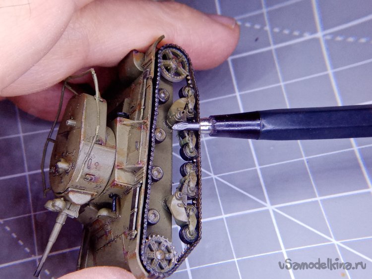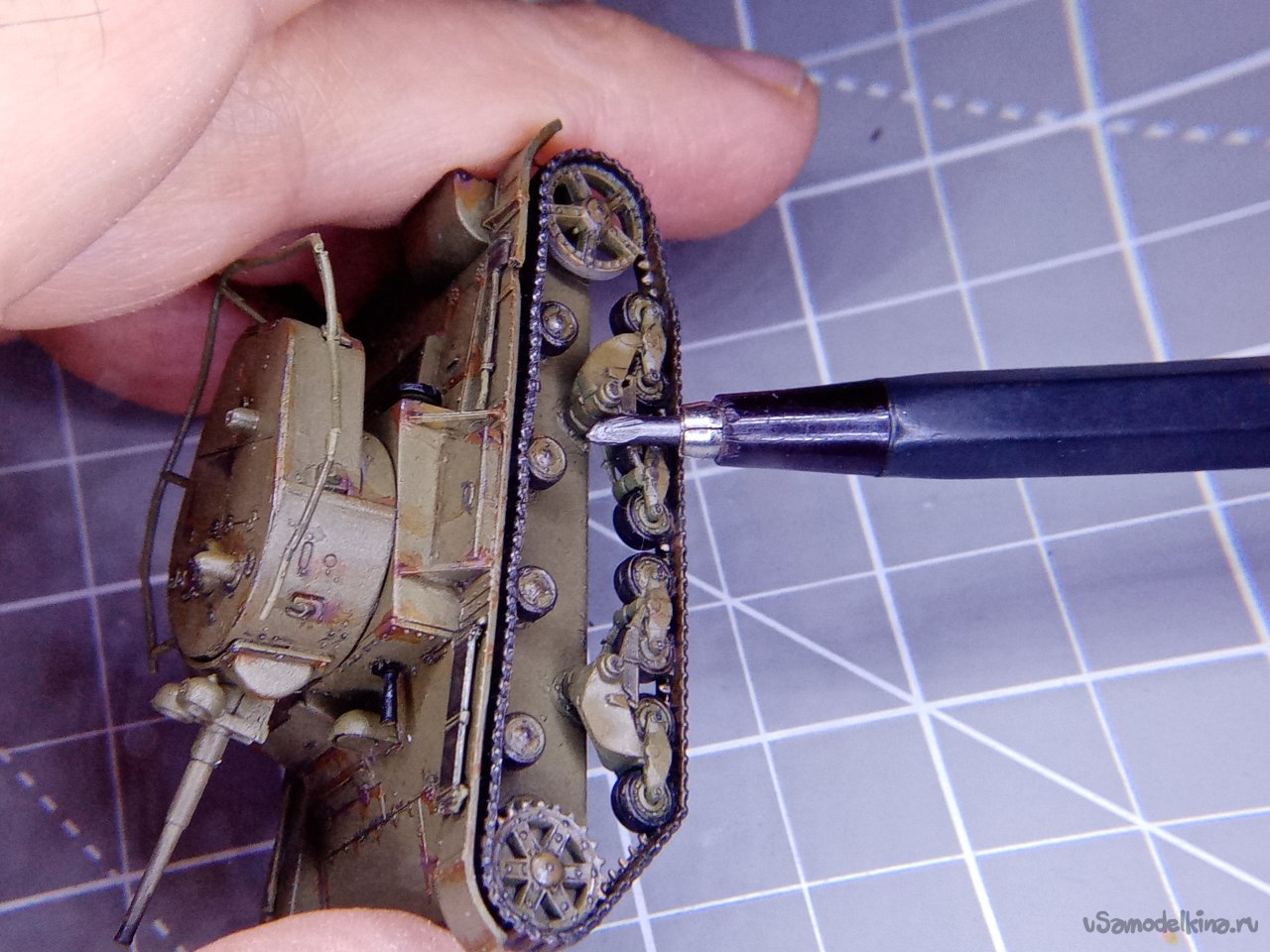 Простым графитовым карандашом прохожу по гребням траков и броне.