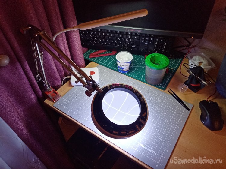 Увеличительная лампа готова и хорошо освещает рабочее поле.