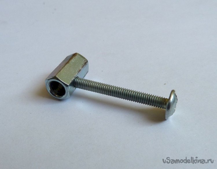 В удлинённых гайках М6 при помощи высверливания сверлом 6 удаляется резьба. Посредине одной из граней на каждой гайке высверливается отверстие сверлом 3,3мм и нарезается резьба М4. Для надёжности сверху отверстия с резьбой припаивается гайка М4.
