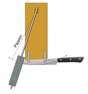 Просто перевернув нож ручкой в другую сторону, затачивается противоположная фаска.