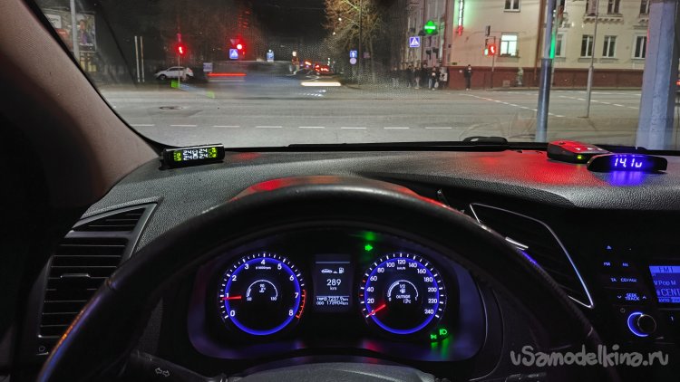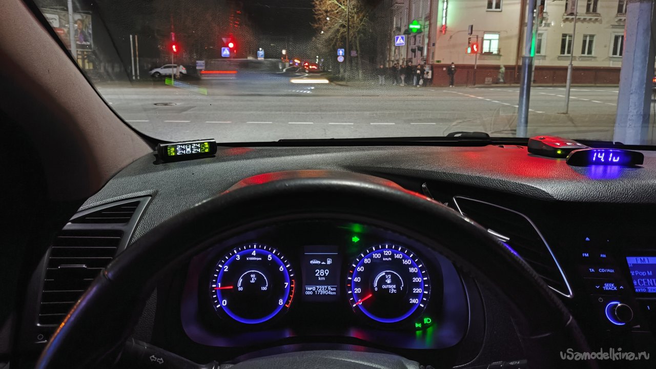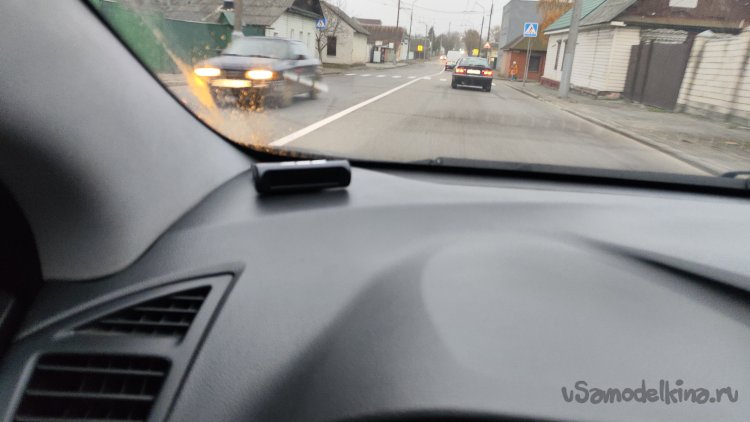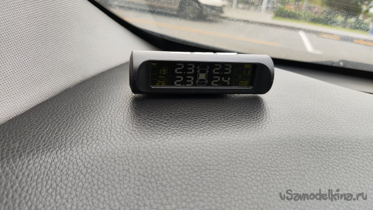 Итак, датчики установлены, внутренний блок тоже установлен. Быбрал для него место слева, возле лобового стекла, чтобы можно было дотянуться до кнопок и бросать на блок взгляд, не отвлекаясь от дороги. Яркость установил минимальную. Если не ошибаюсь, есть пять уровней.