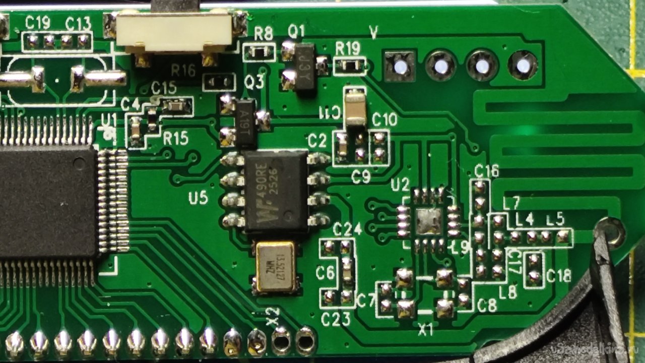 Не сразу обнаружил на чужом фото датчик вибрации, увидел уже после того, как нашел свой. Судя по всему, чужой датчик над верхней кнопкой, похожий немного на кнопку, чуть больше размером, слева от радиомодуля, возде надписи 1206.