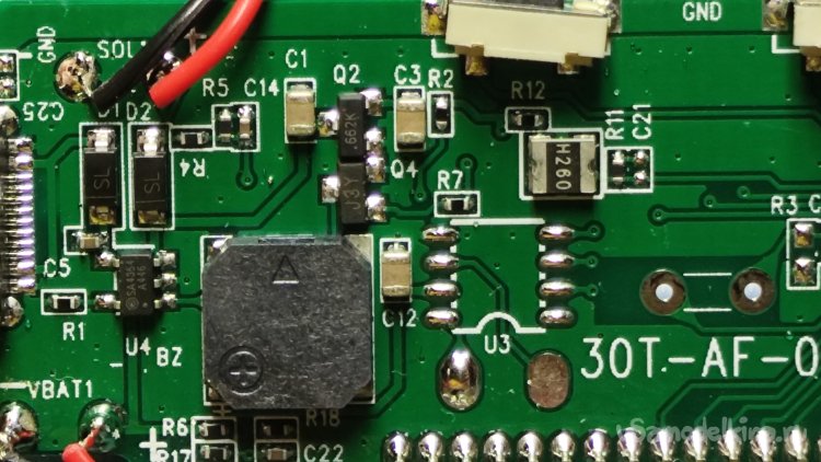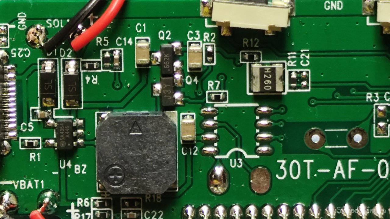 Датчик вибрации пришлось поискать. Он явно есть, но в каком исполнении и где? Ведь датчик может быть даже в контроллере, который "удачно" без маркировки. Изучал плату достаточно долго. Возможно в роли датчика вибрации использован неизвестный мне элемент с маркировкой H260, который почему-то звонится накоротко?