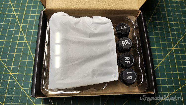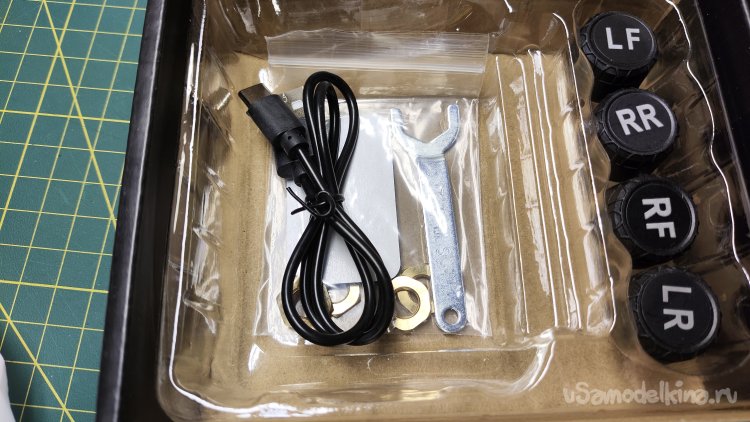Комплект поставки очень простой: внутренний блок, 4 внешних датчика, гайки для фиксации датчиков, ключ для гаек, провод для зарядки, вспененный скотч для монтажа. Должна еще быть инструкция, но я ее либо забыл на ПВЗ, либо ее не было.
