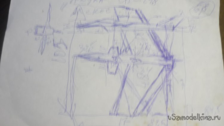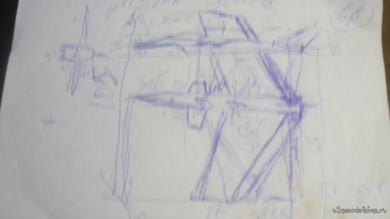 Создание этой модели началось , как это вам странно не покажется, во сне. Проснулся, спонтанно, сделал набросок на бумаге , а позже прикинул масштаб и проставил размеры.